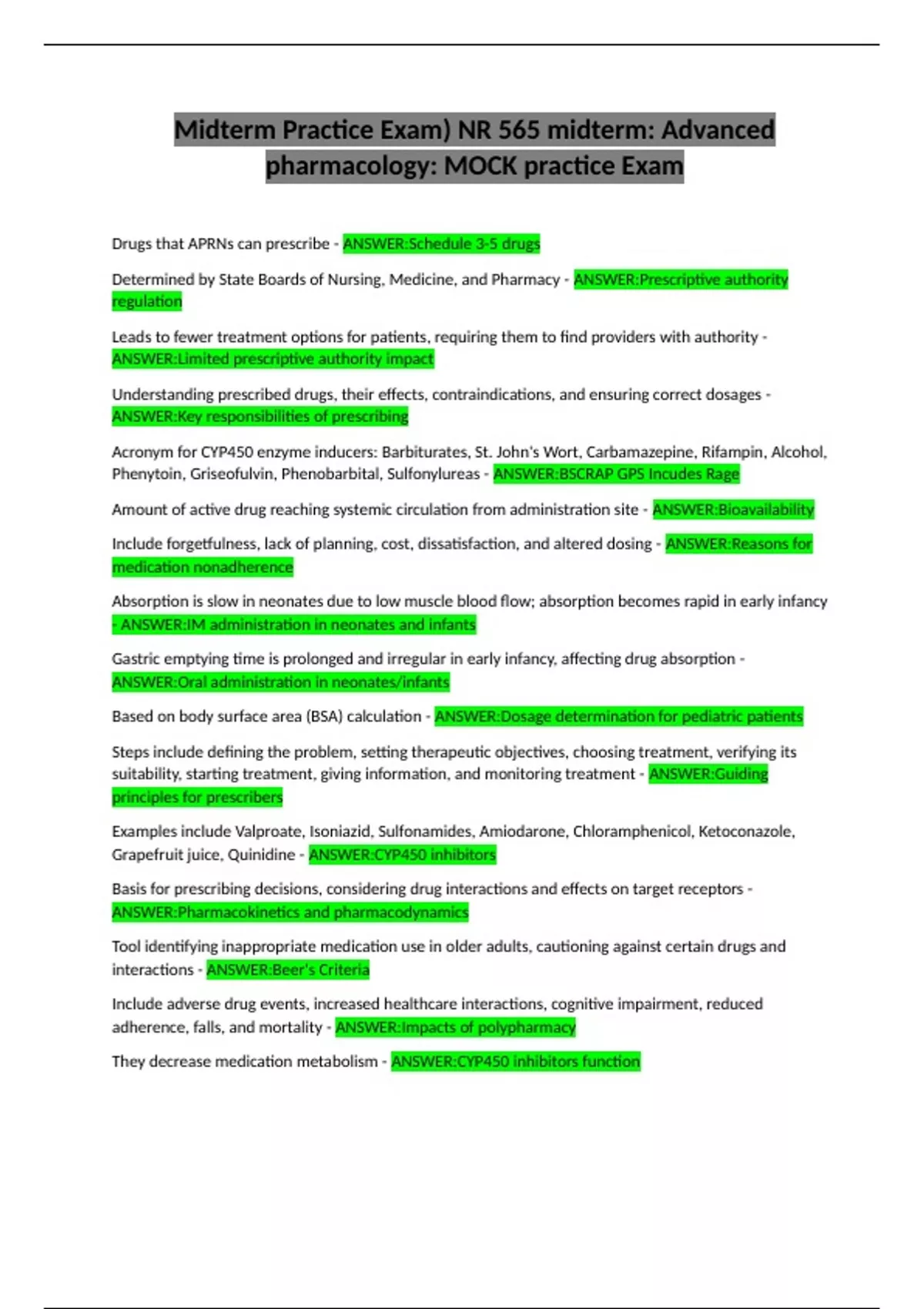 pharmacology: MOCK practice Exam
