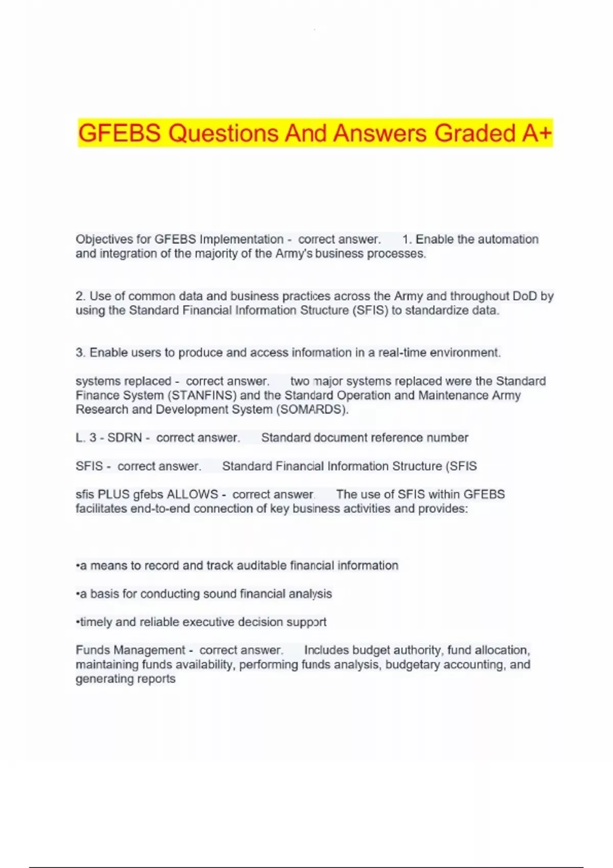 GFEBS Questions And Answers Graded A+ GFEBS Questions And Answers Graded A+ GFEBS Questions And Answers Graded A+ GFEBS Questions And Answers Graded A+