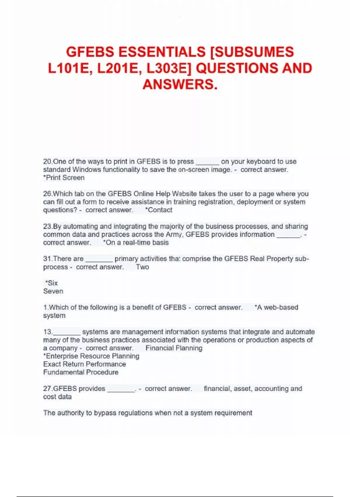GFEBS ESSENTIALS [SUBSUMES L101E, L201E, L303E] QUESTIONS AND ANSWERS.