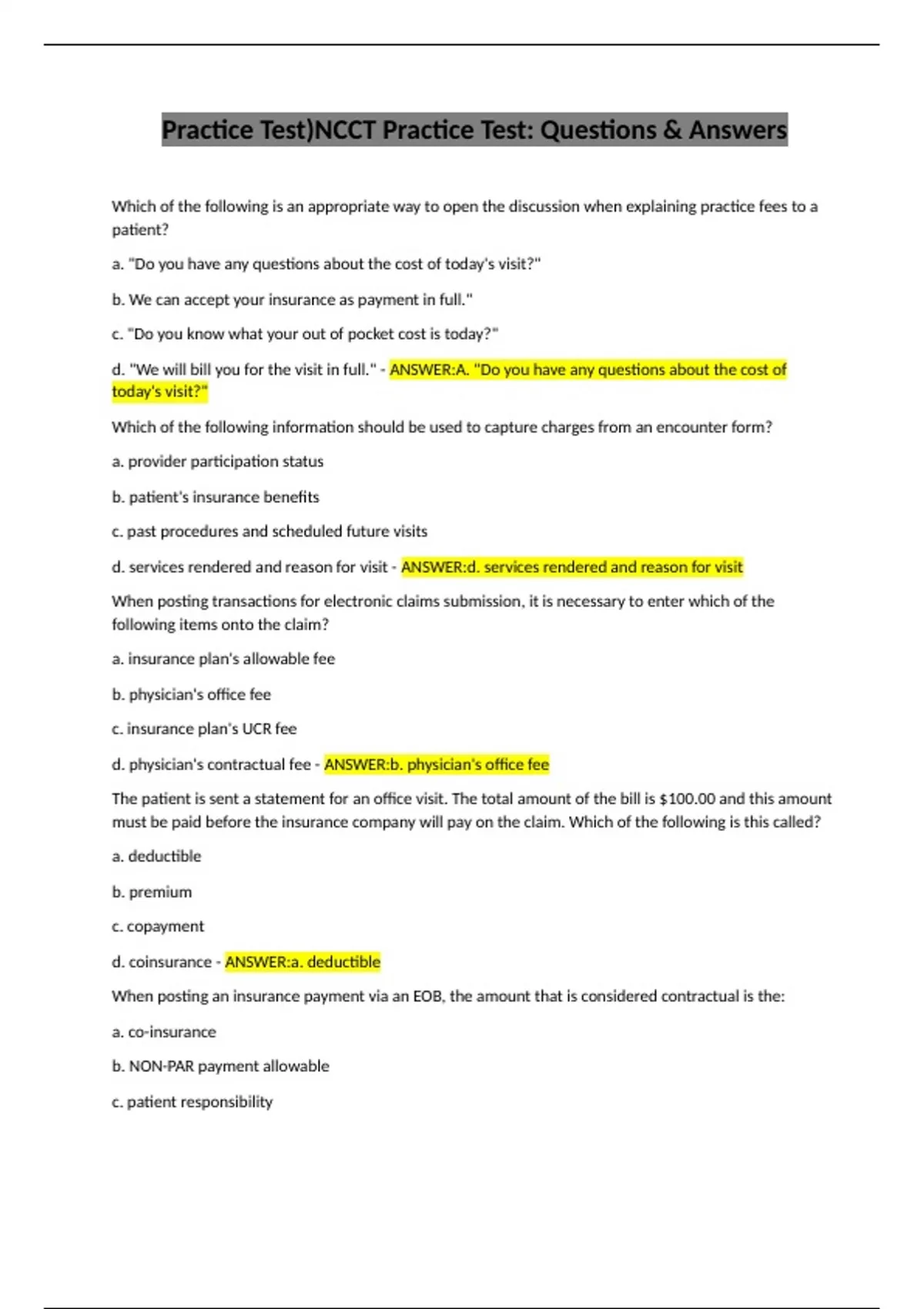 , d. insurance allowed amount - ANSWER:d. insurance allowed amount