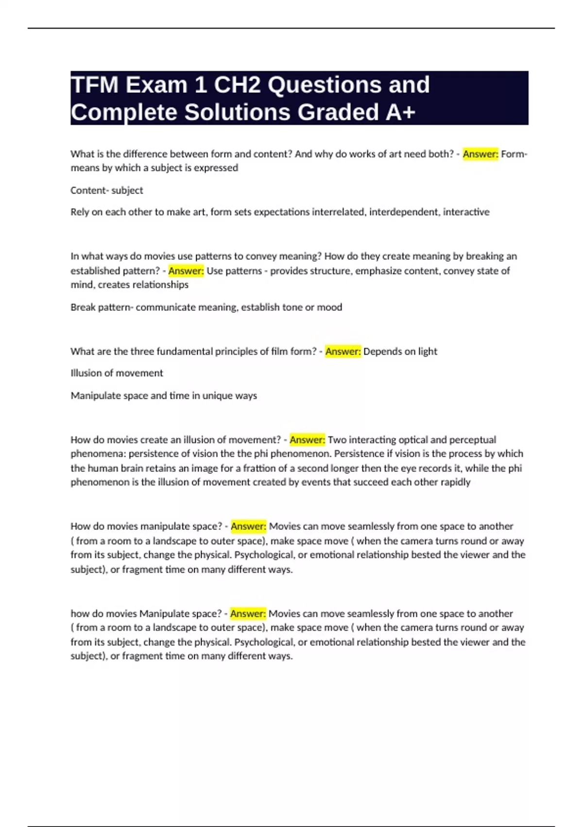 TFM Exam 1 CH2 Questions and Complete Solutions Graded A+