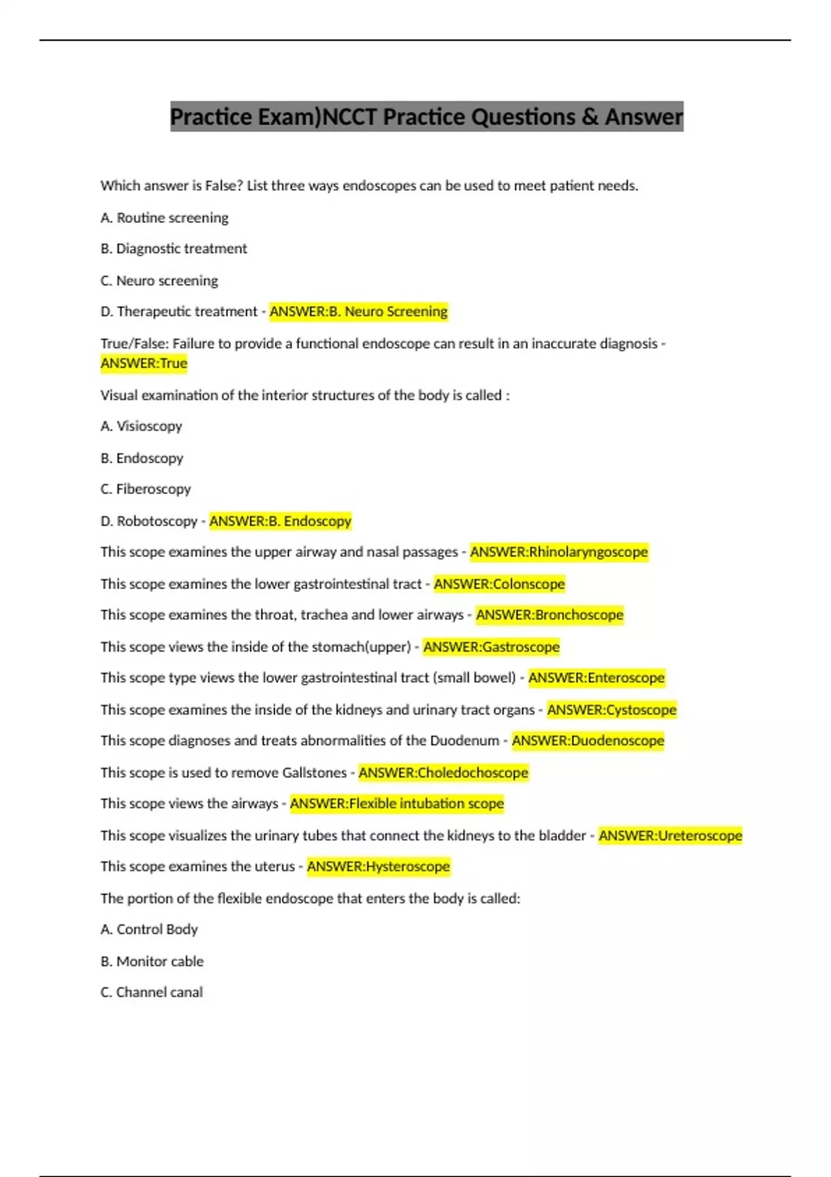 Practice Exam)NCCT Practice Questions & Answer