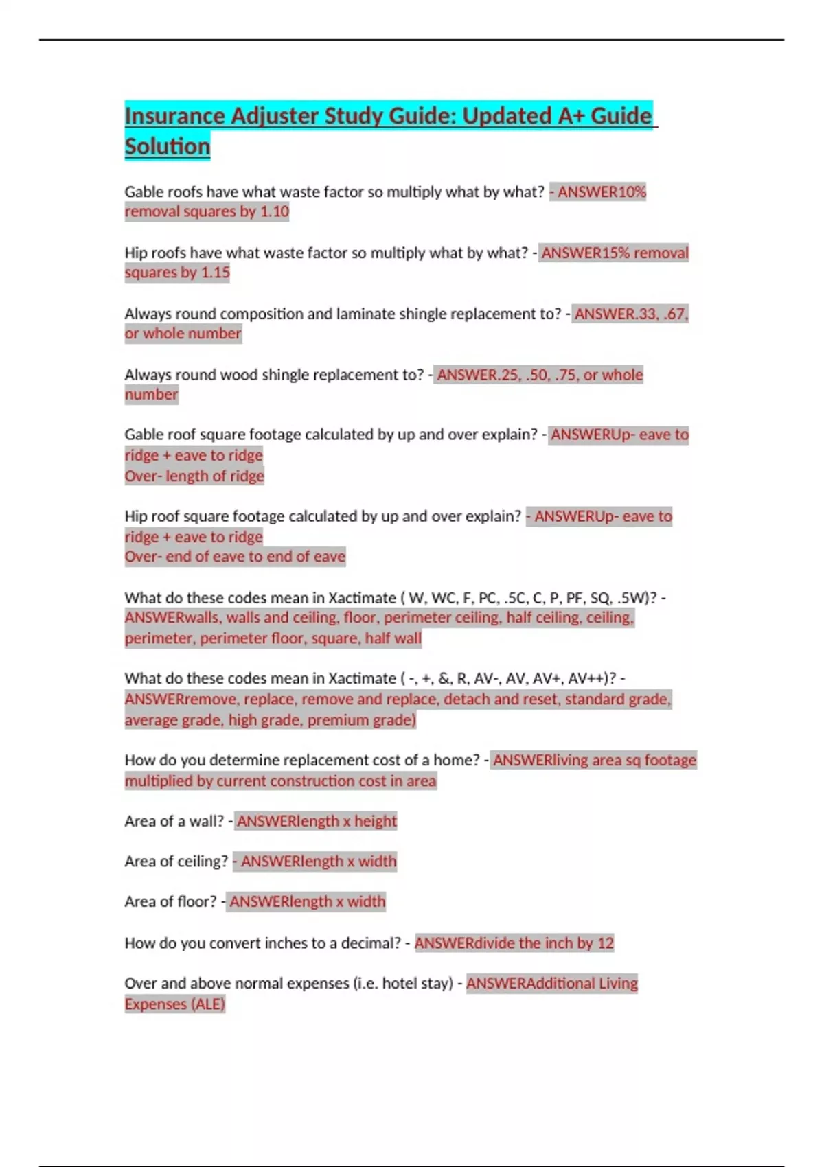 Insurance Adjuster Study Guide: Updated A+ Guide