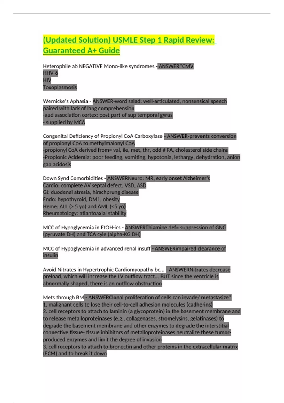 (Updated Solution) USMLE Step 1 Rapid Review: