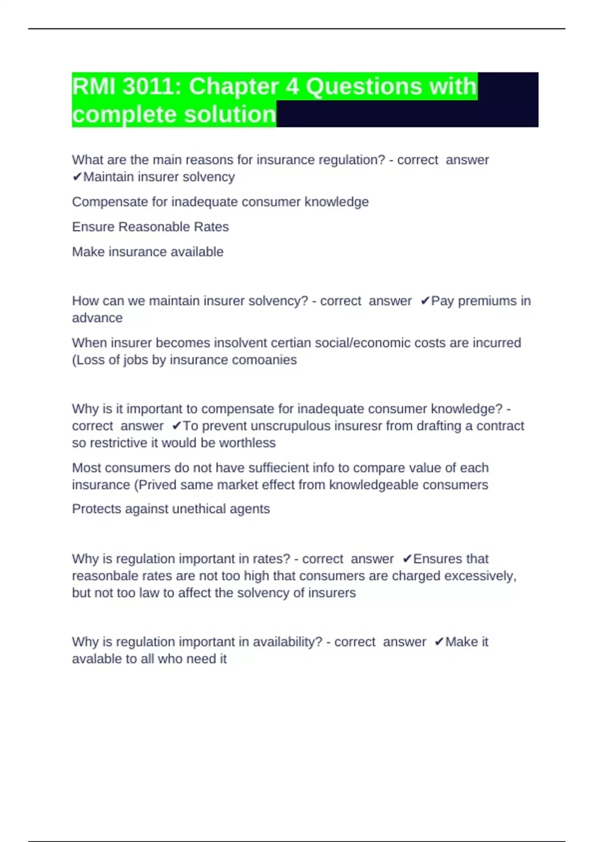 How can we maintain insurer solvency? - correct answer ✔Pay premiums in