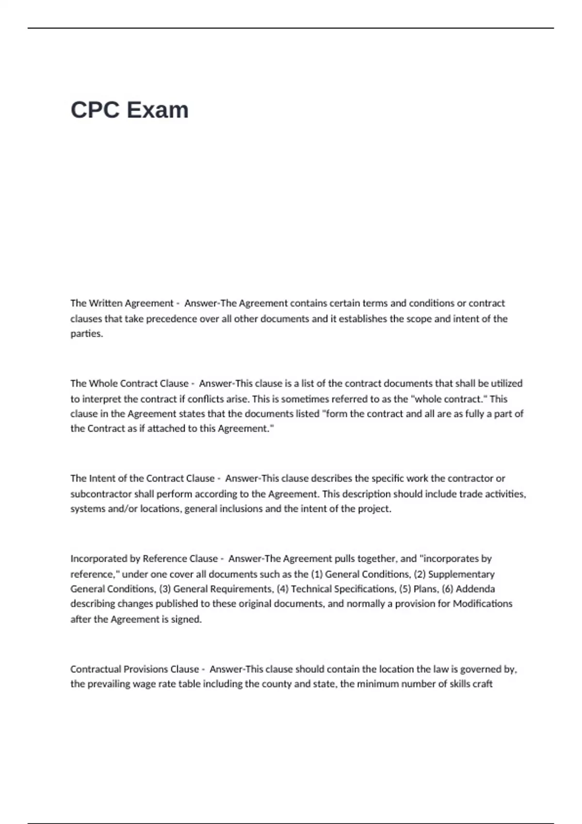 The Whole Contract Clause - Answer-This clause is a list of the contract documents that shall be utilized