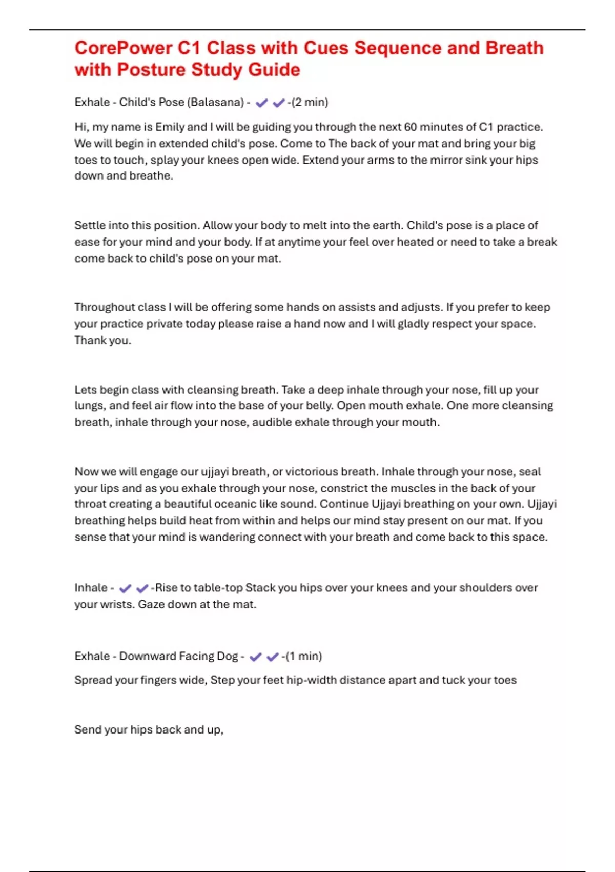 , CorePower C1 Class with Cues Sequence and Breath