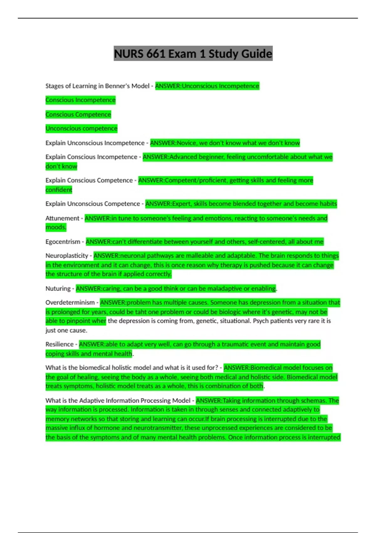 NURS 661 Exam 1 Study Guide