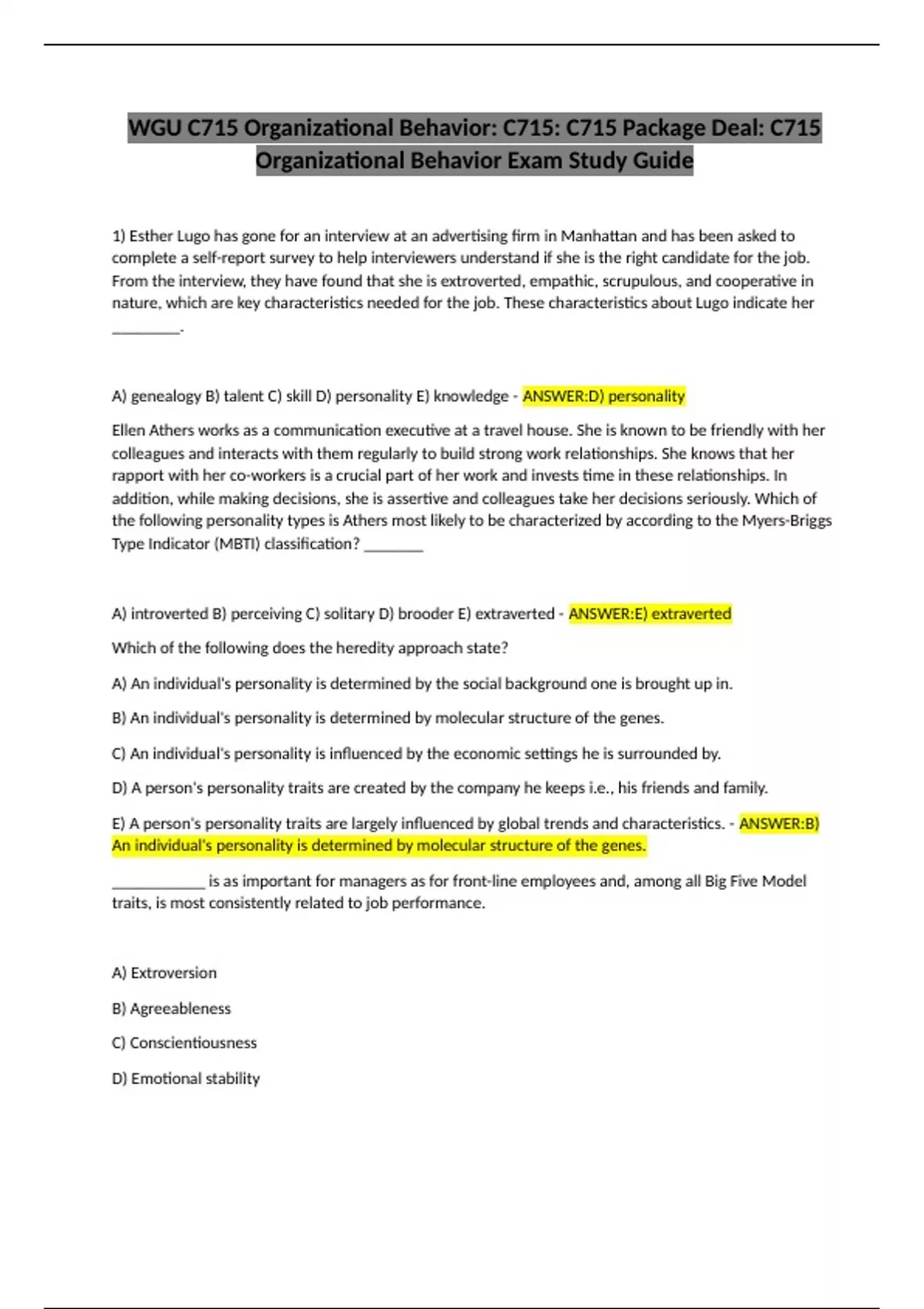 WGU C715 Organizational Behavior: C715: C715 Package Deal: C715