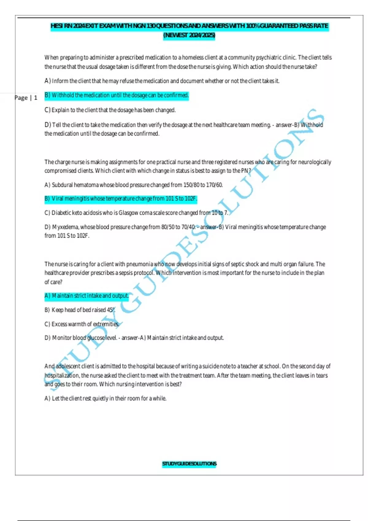 HESI RN 2024 EXIT EXAM WITH NGN 130 QUESTIONS AND ANSWERS WITH 100% GUARANTEED PASS RATE (NEWEST 2024/2025)