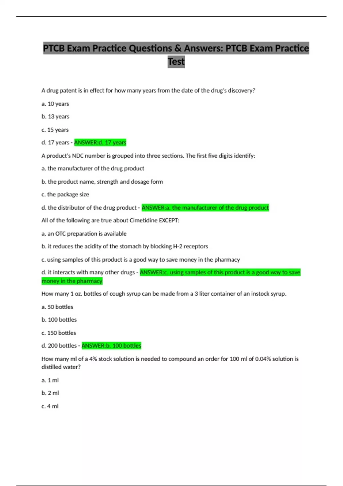 d. 50% of the original labeled expiration date up to maximum of one year - ANSWER:d. 50% of the