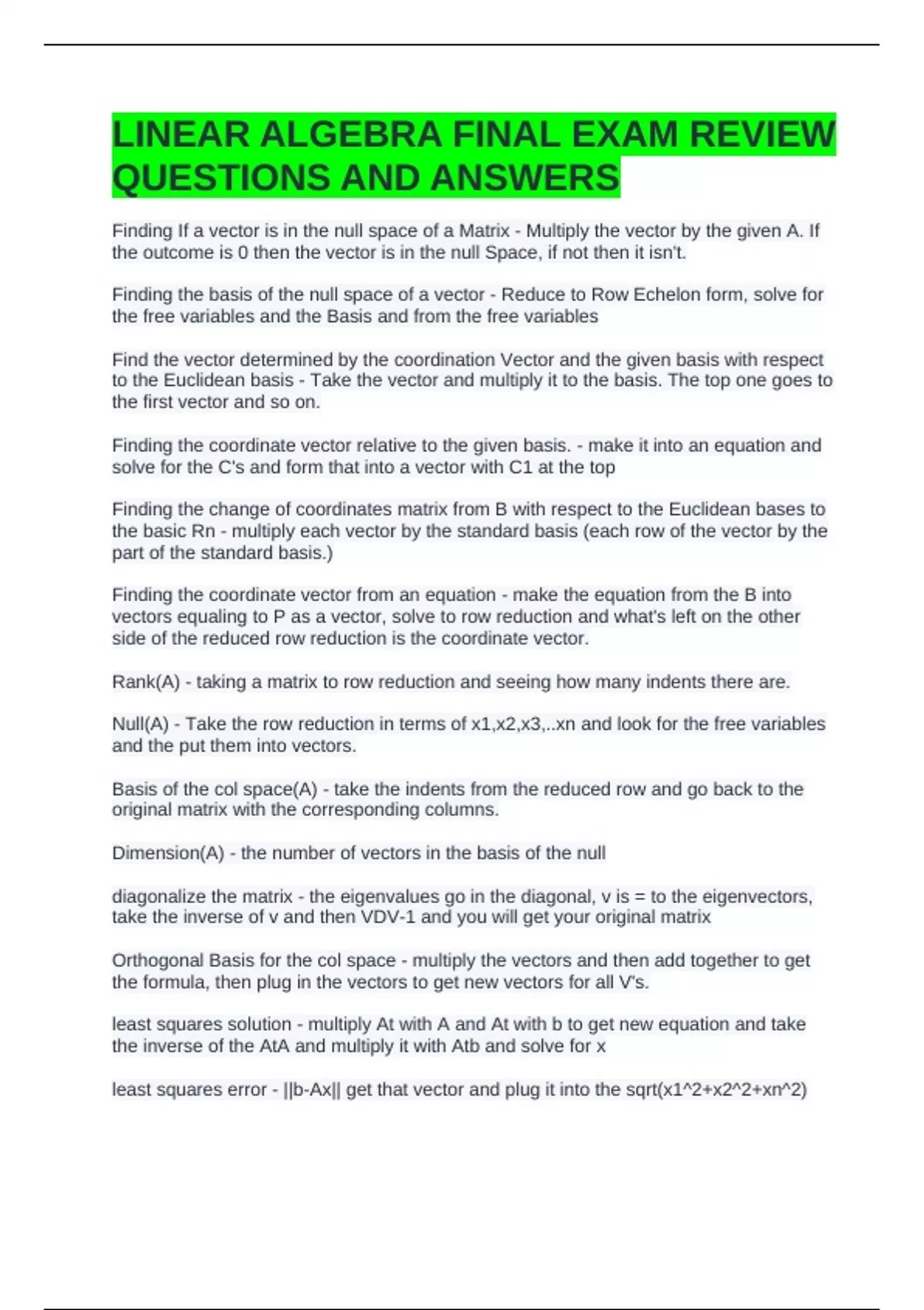 LINEAR ALGEBRA FINAL EXAM REVIEW