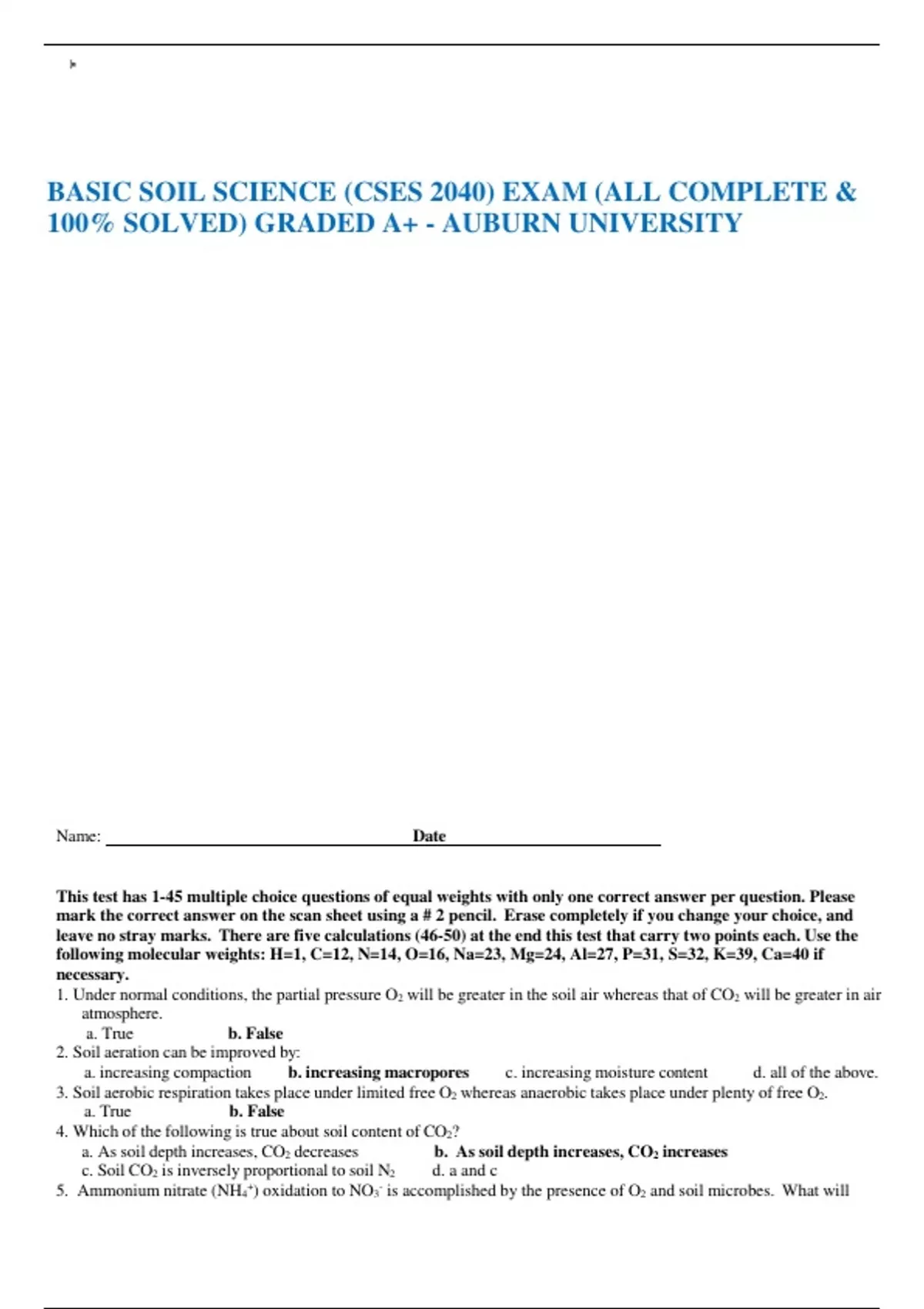 BASIC SOIL SCIENCE (CSES 2040) EXAM (ALL COMPLETE &