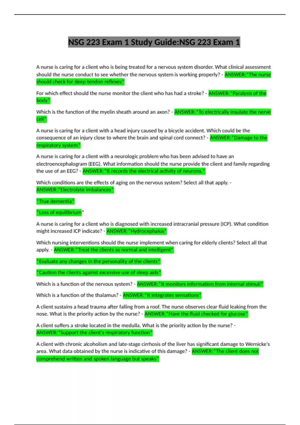 should the nurse conduct to see whether the nervous system is working properly? - ANSWER:*The nurse
