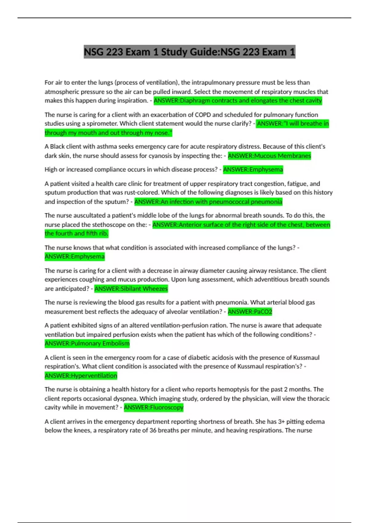 NSG 223 Exam 1 Study Guide:NSG 223 Exam 1