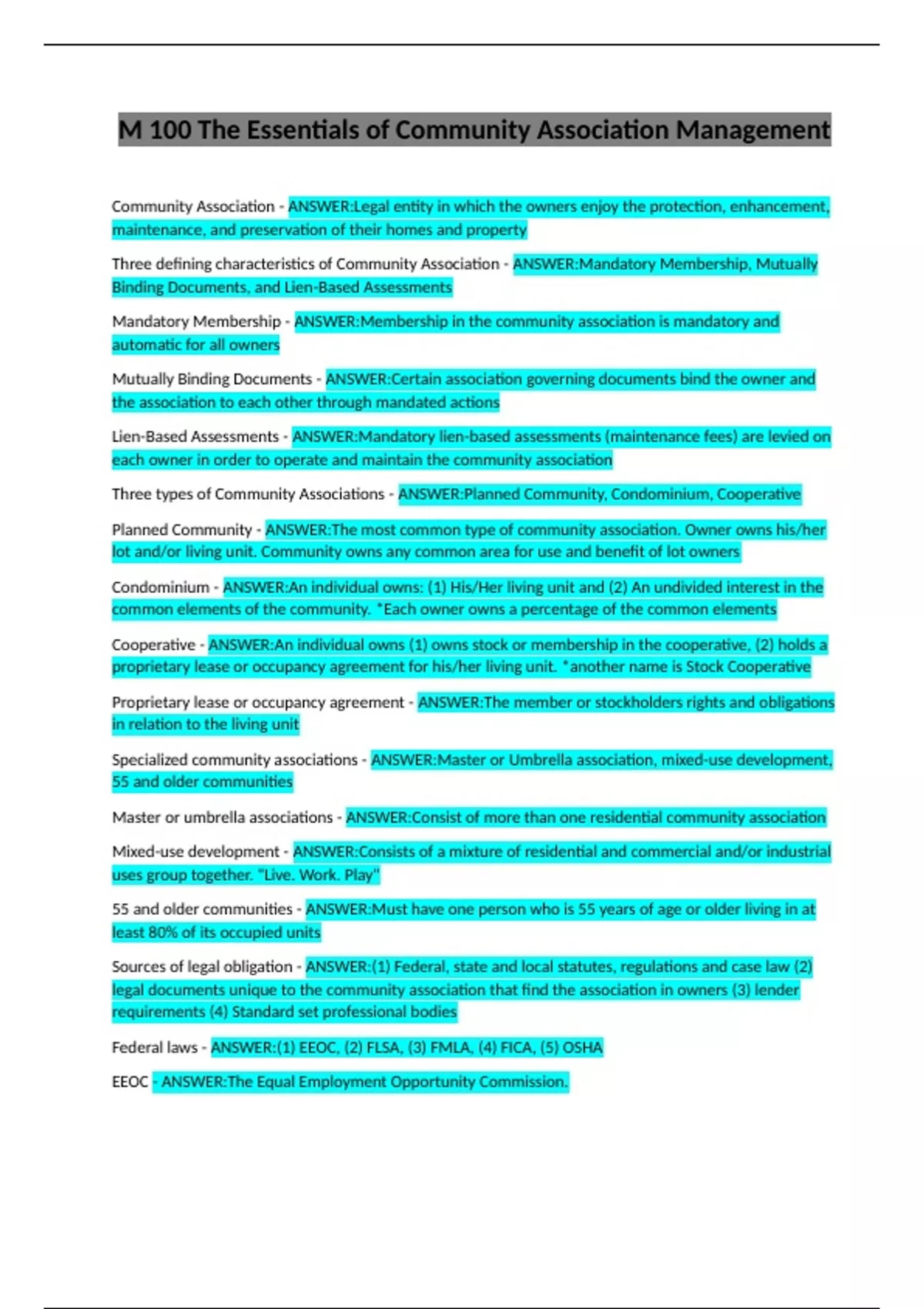 Mandatory Membership - ANSWER:Membership in the community association is mandatory and