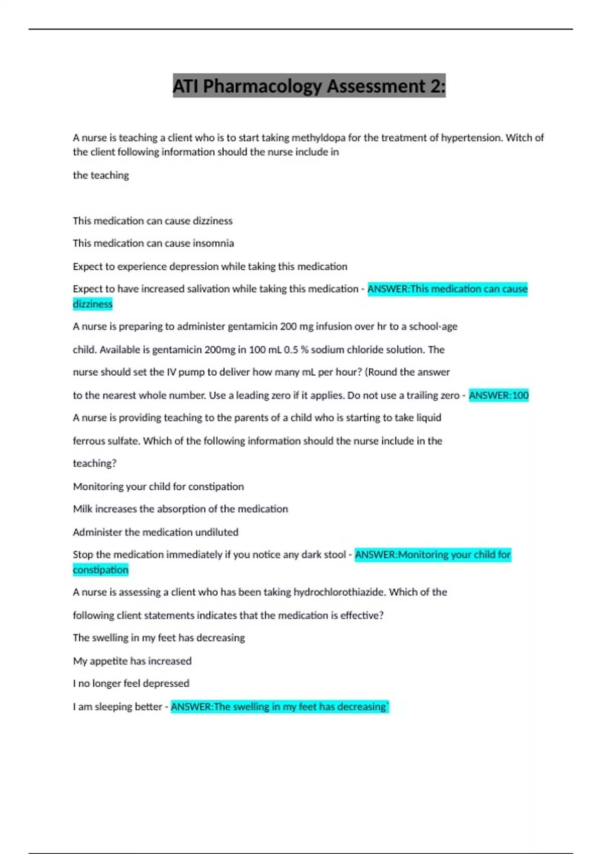 via continuous IV infusion. Which of the following findings should the nurse identify