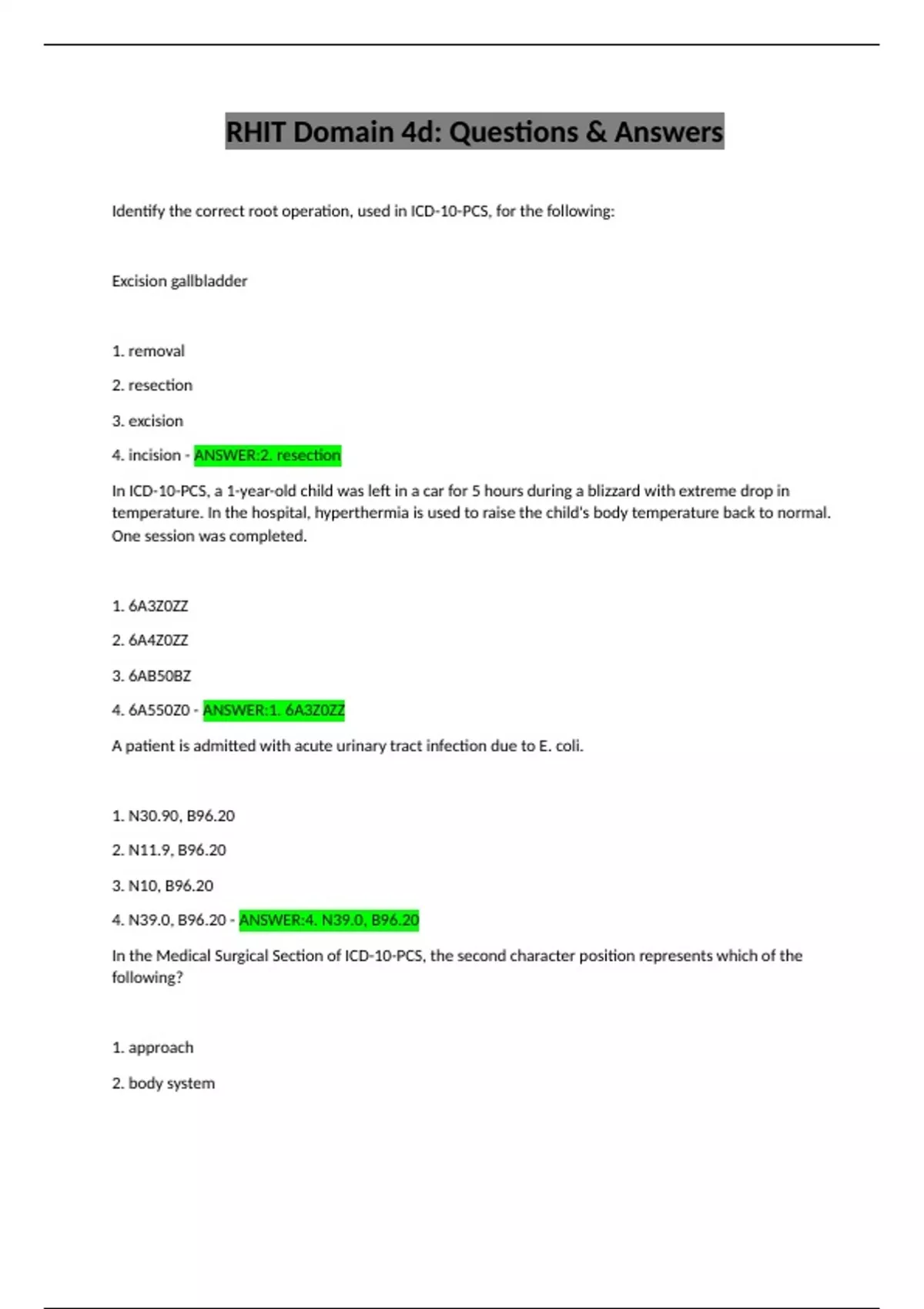 4. 6A550Z0 - ANSWER:1. 6A3Z0ZZ