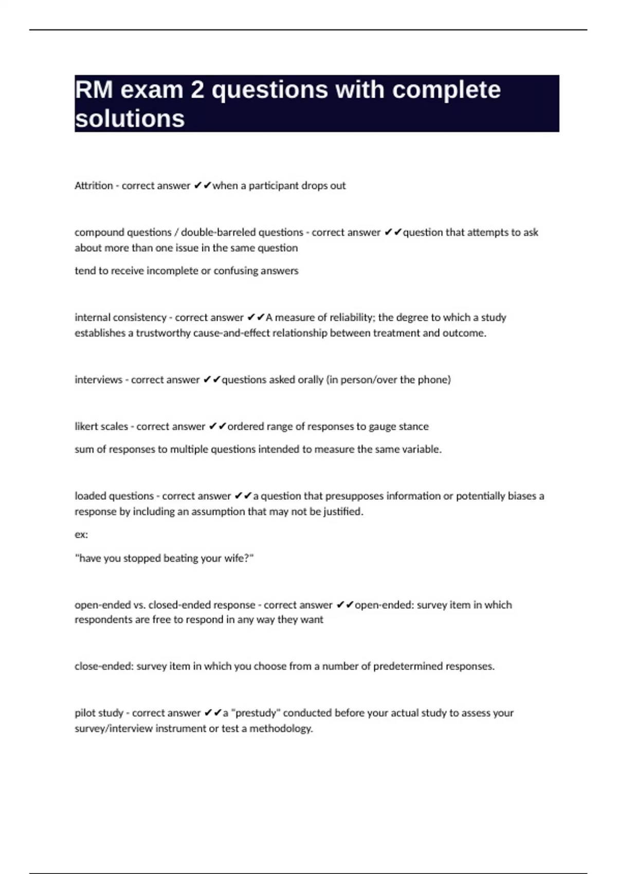 RM exam 2 questions with complete