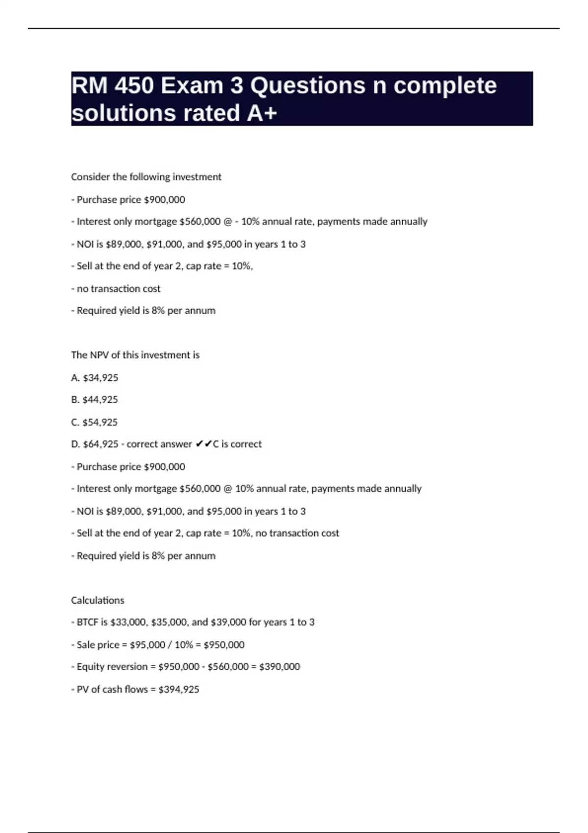 D. $64,925 - correct answer ✔✔C is correct