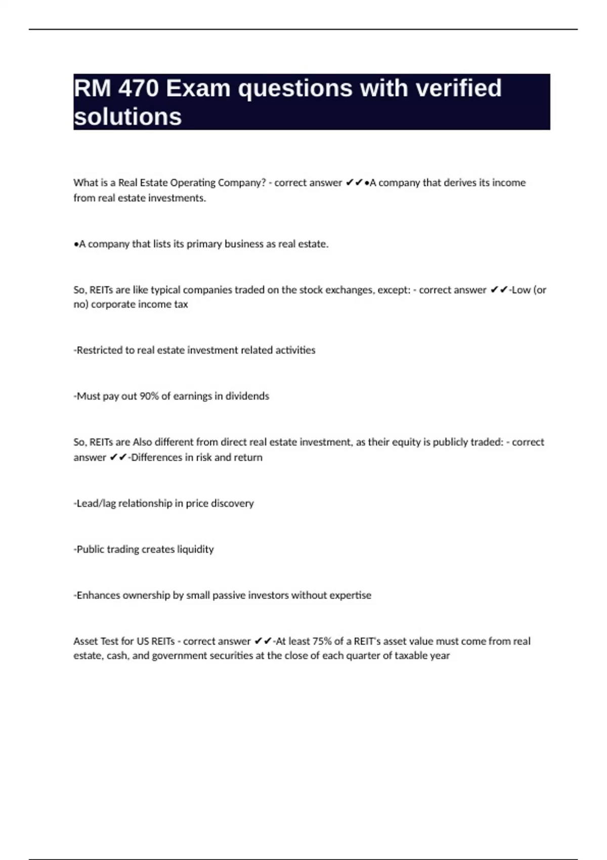 RM 470 Exam questions with verified solutions