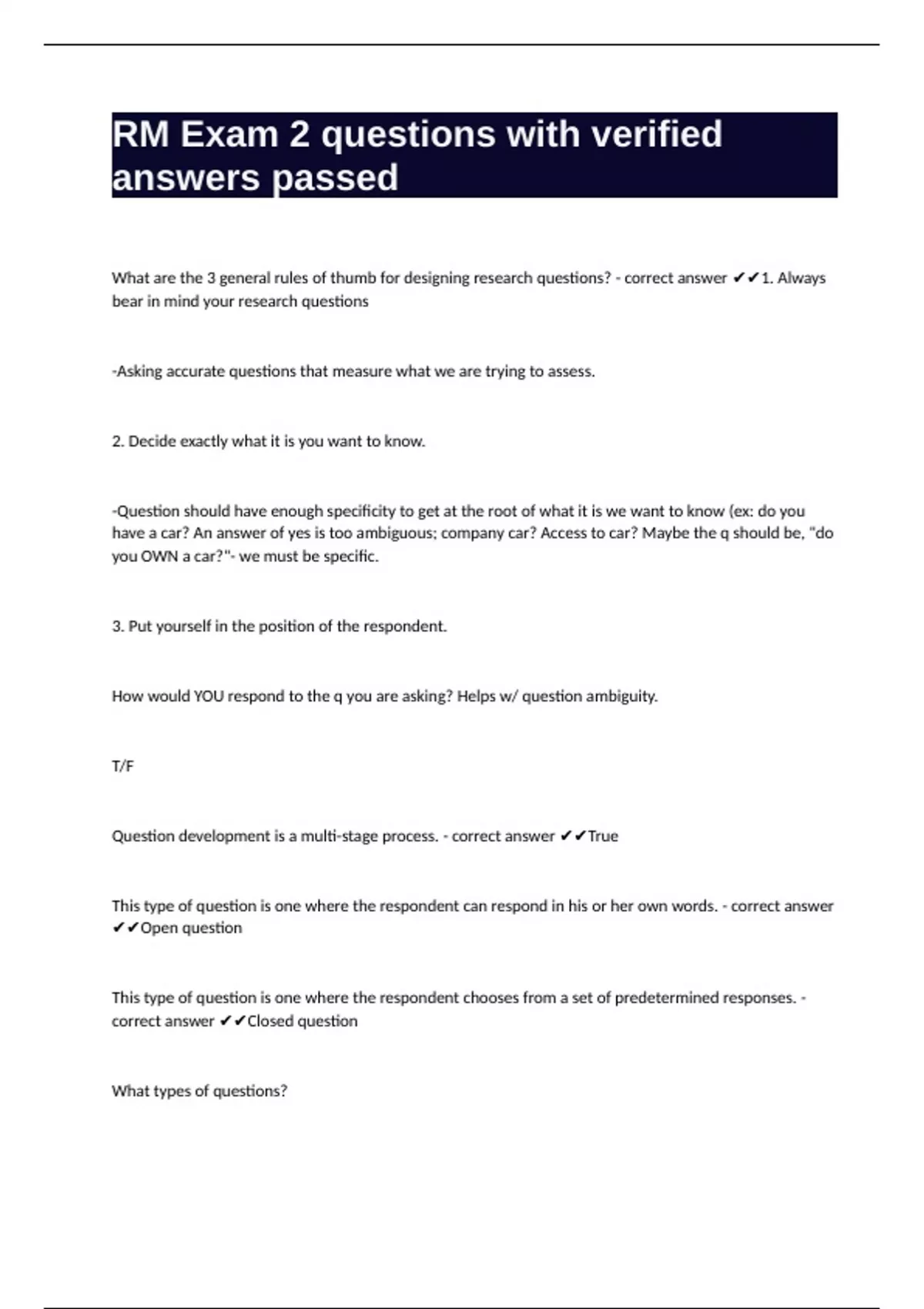 RM Exam 2 questions with verified