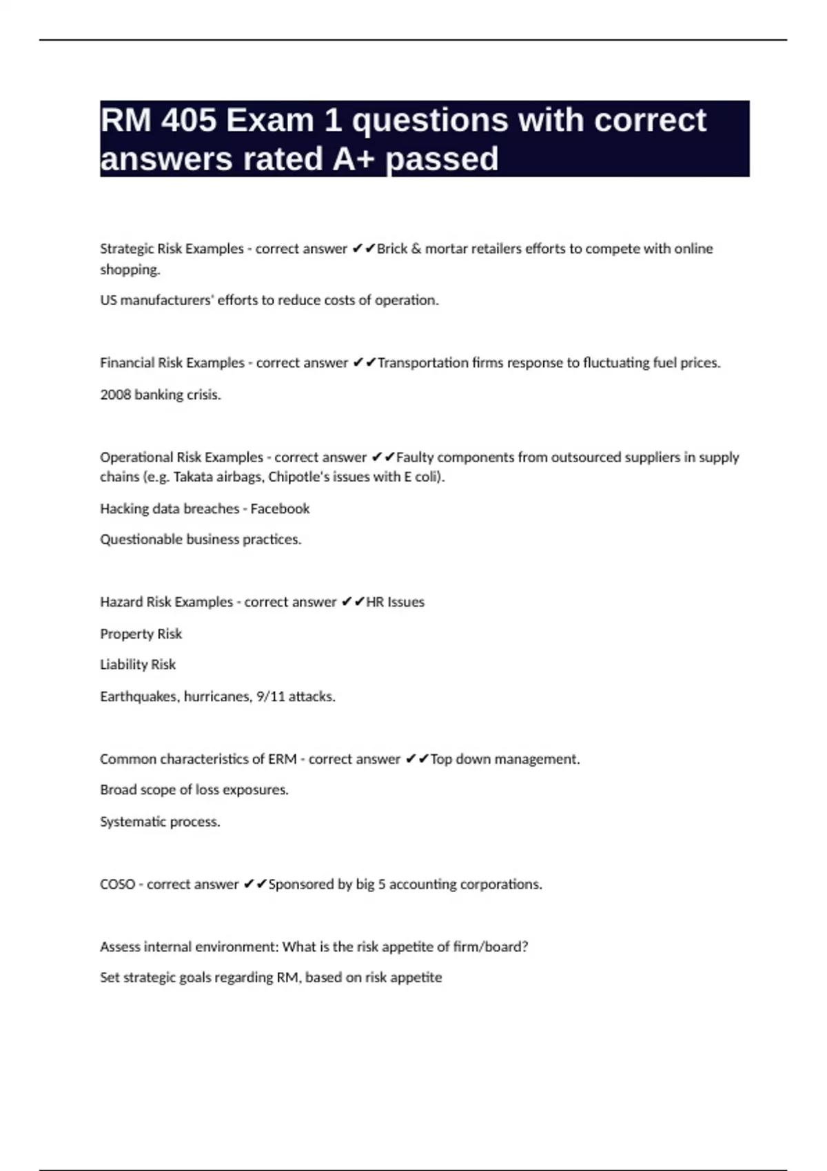 RM 405 Exam 1 questions with correct answers rated A+ passed