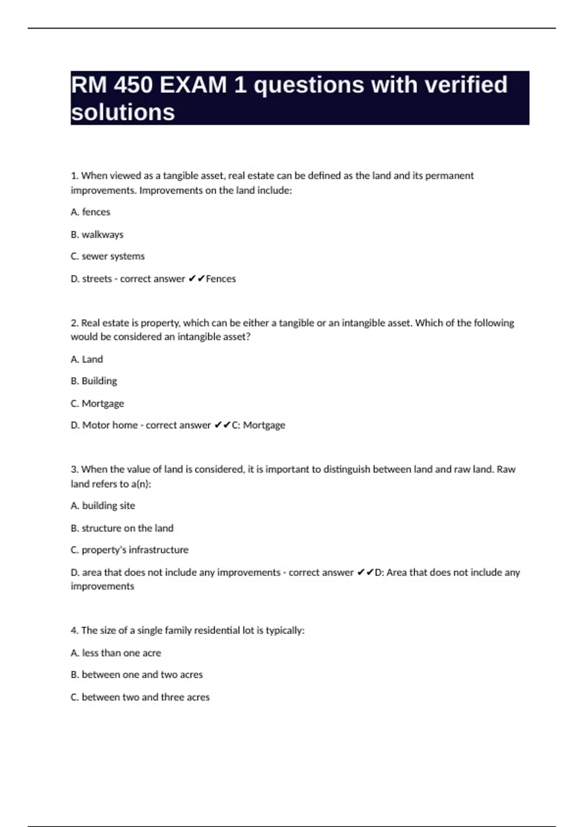 1. When viewed as a tangible asset, real estate can be defined as the land and its permanent