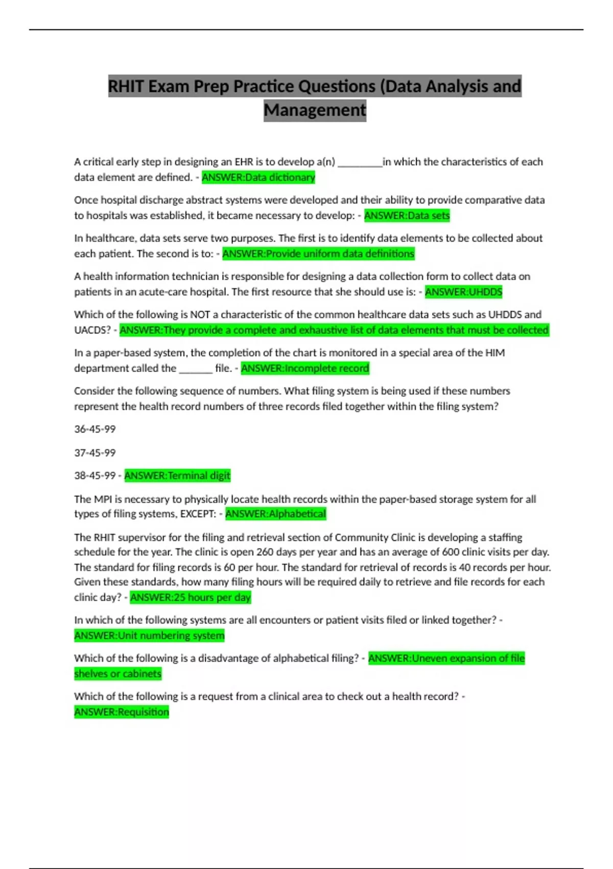 , Which of the following statements describes alphabetic filing? - ANSWER:File the record alphabetically