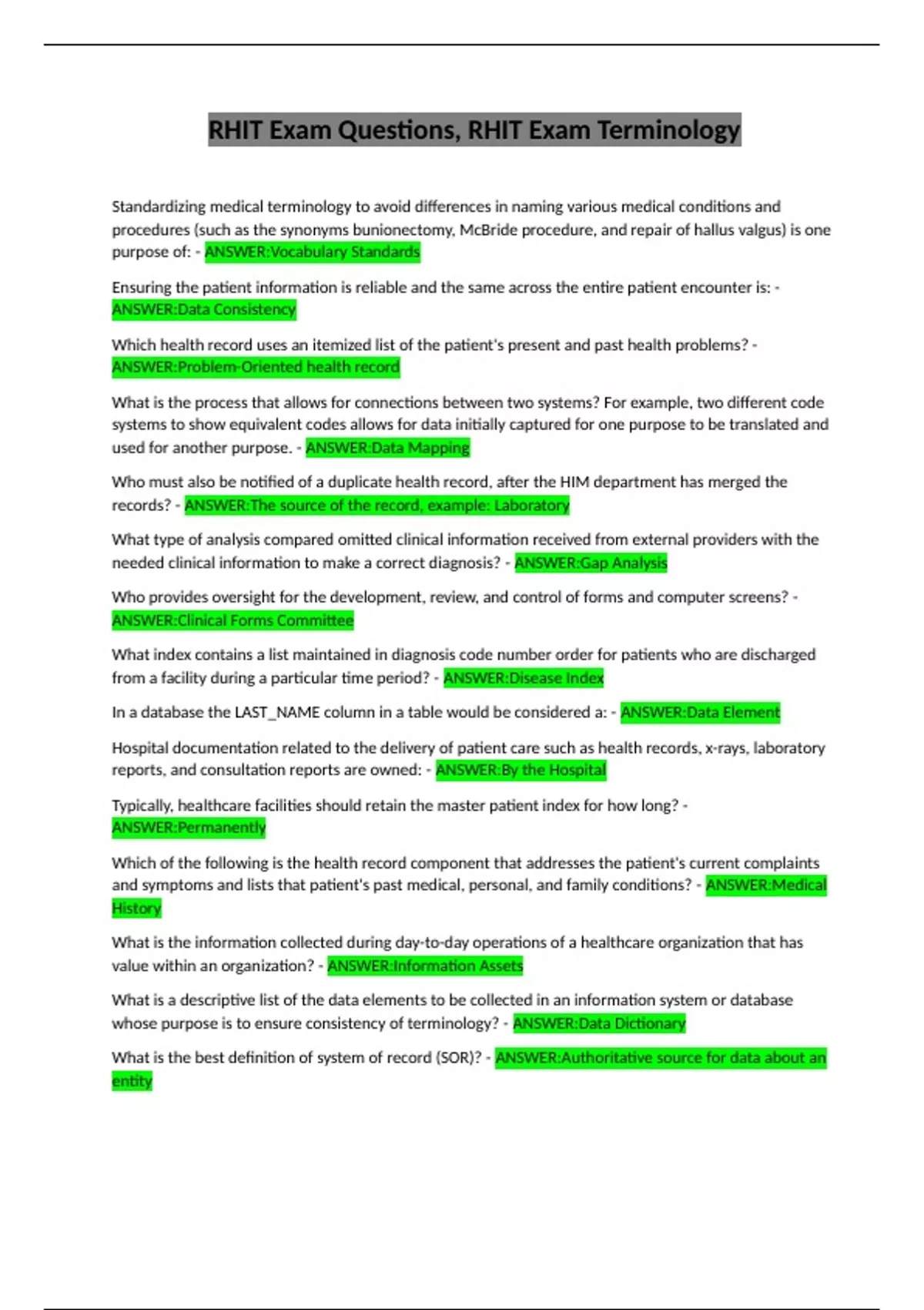 needed clinical information to make a correct diagnosis? - ANSWER:Gap Analysis
