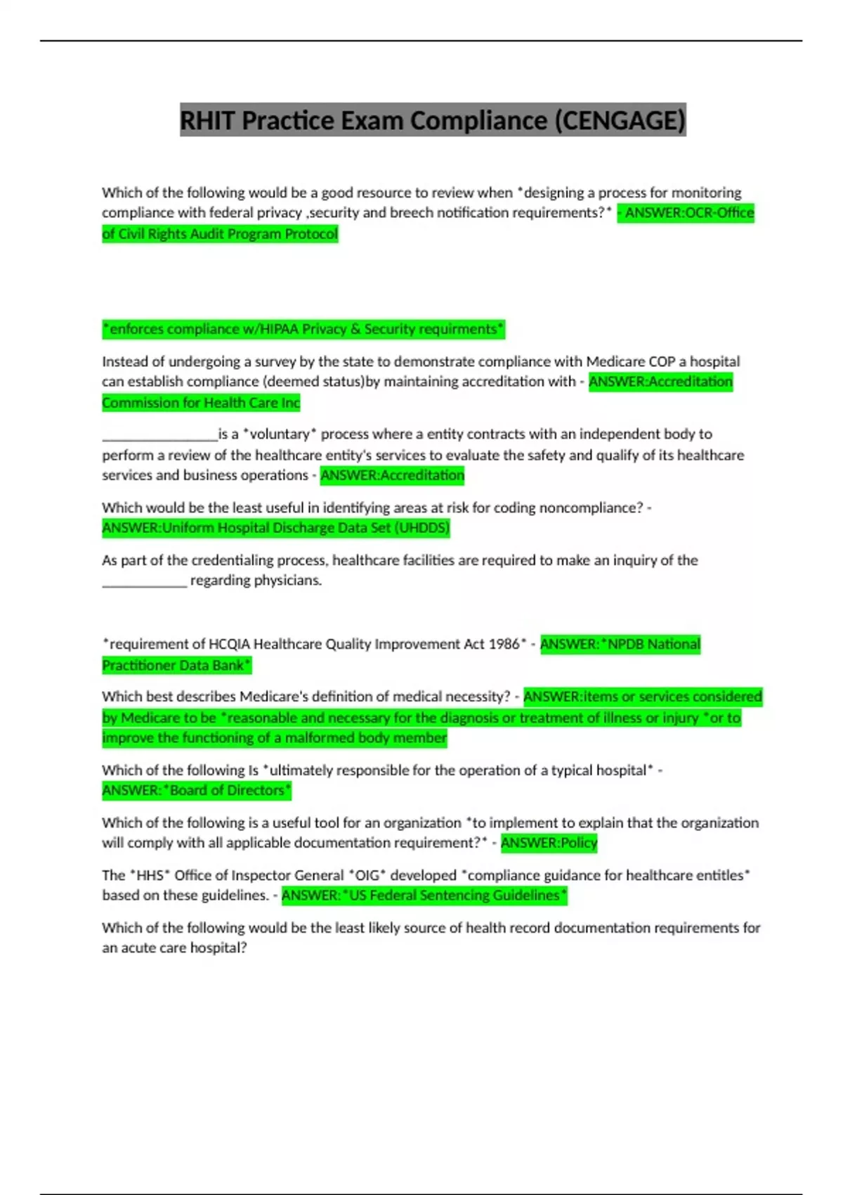 will comply with all applicable documentation requirement?* - ANSWER:Policy