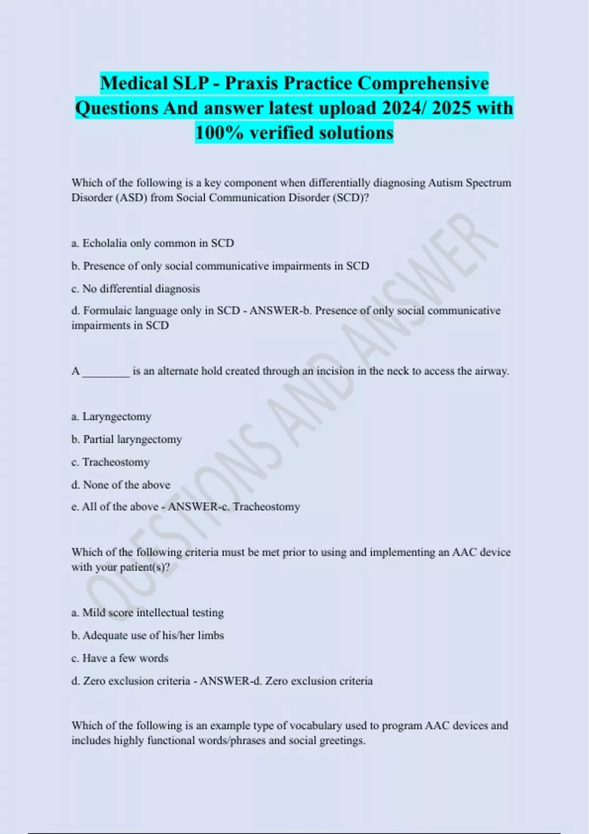 Medical SLP - Praxis Practice Comprehensive