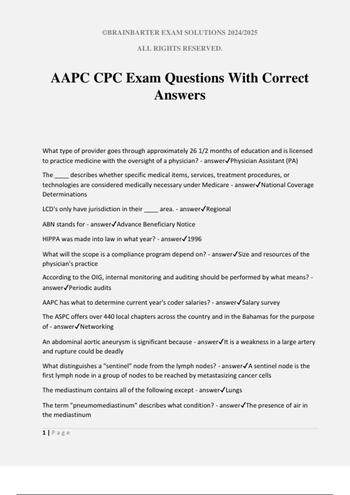 AAPC CPC Exam Questions With Correct