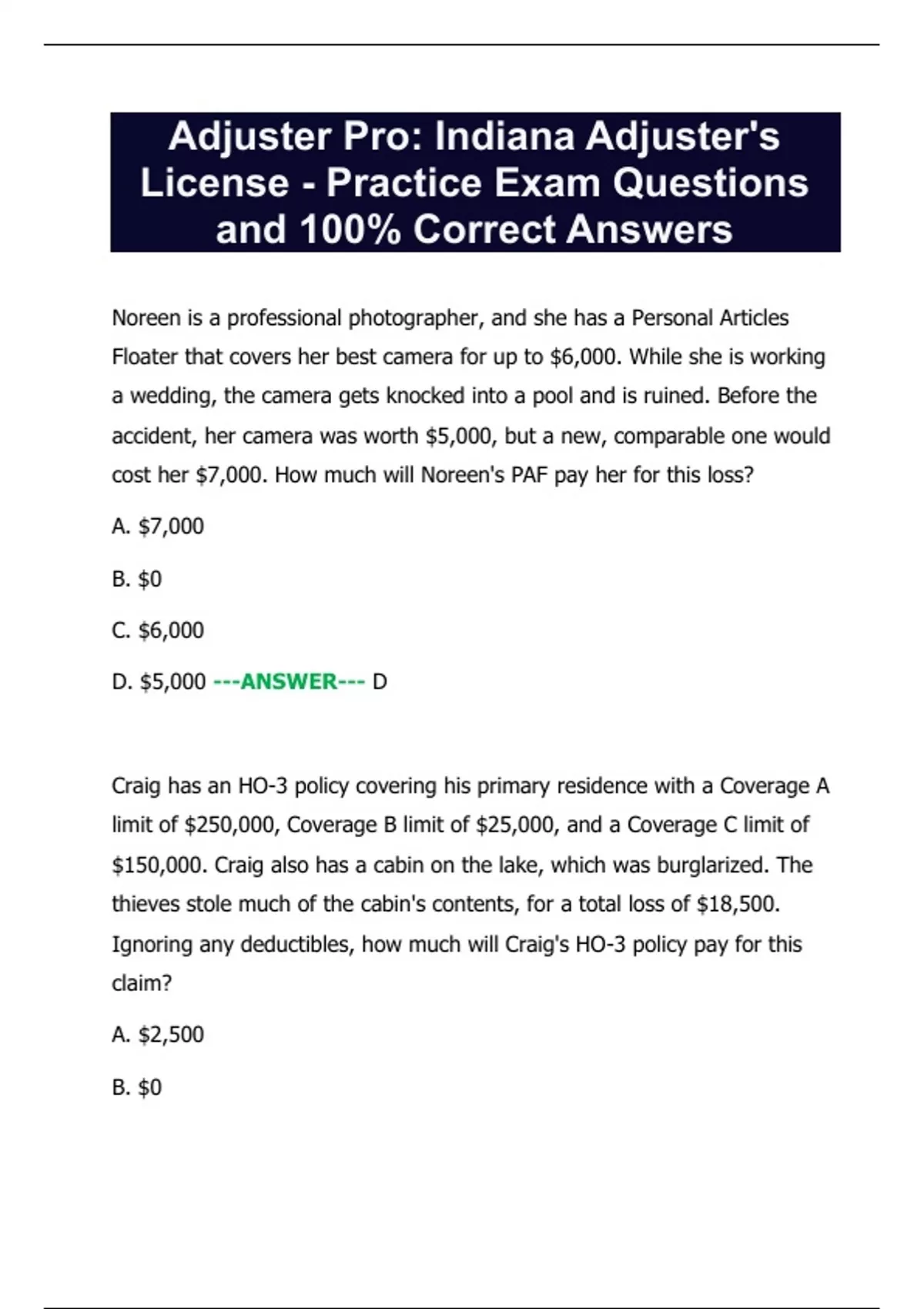 cost her $7,000. How much will Noreen's PAF pay her for this loss?