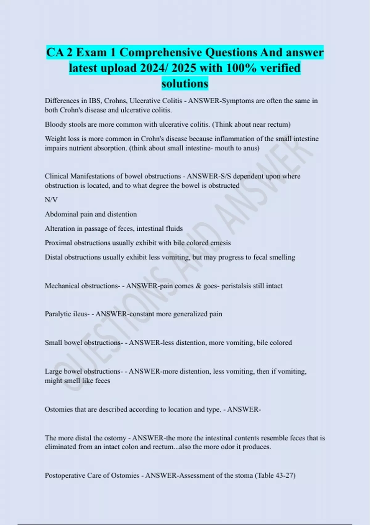 CA 2 Exam 1 Comprehensive Questions And answer latest upload 2024/ 2025 with 100% verified solutions