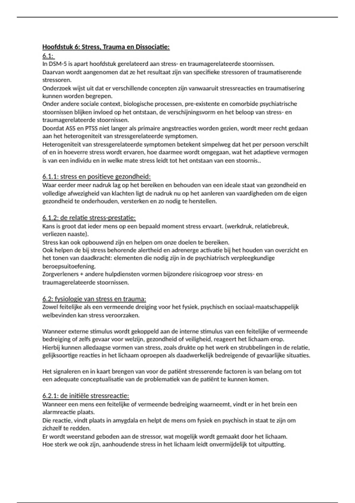 Hoofdstuk 6: Stress, Trauma en Dissociatie: