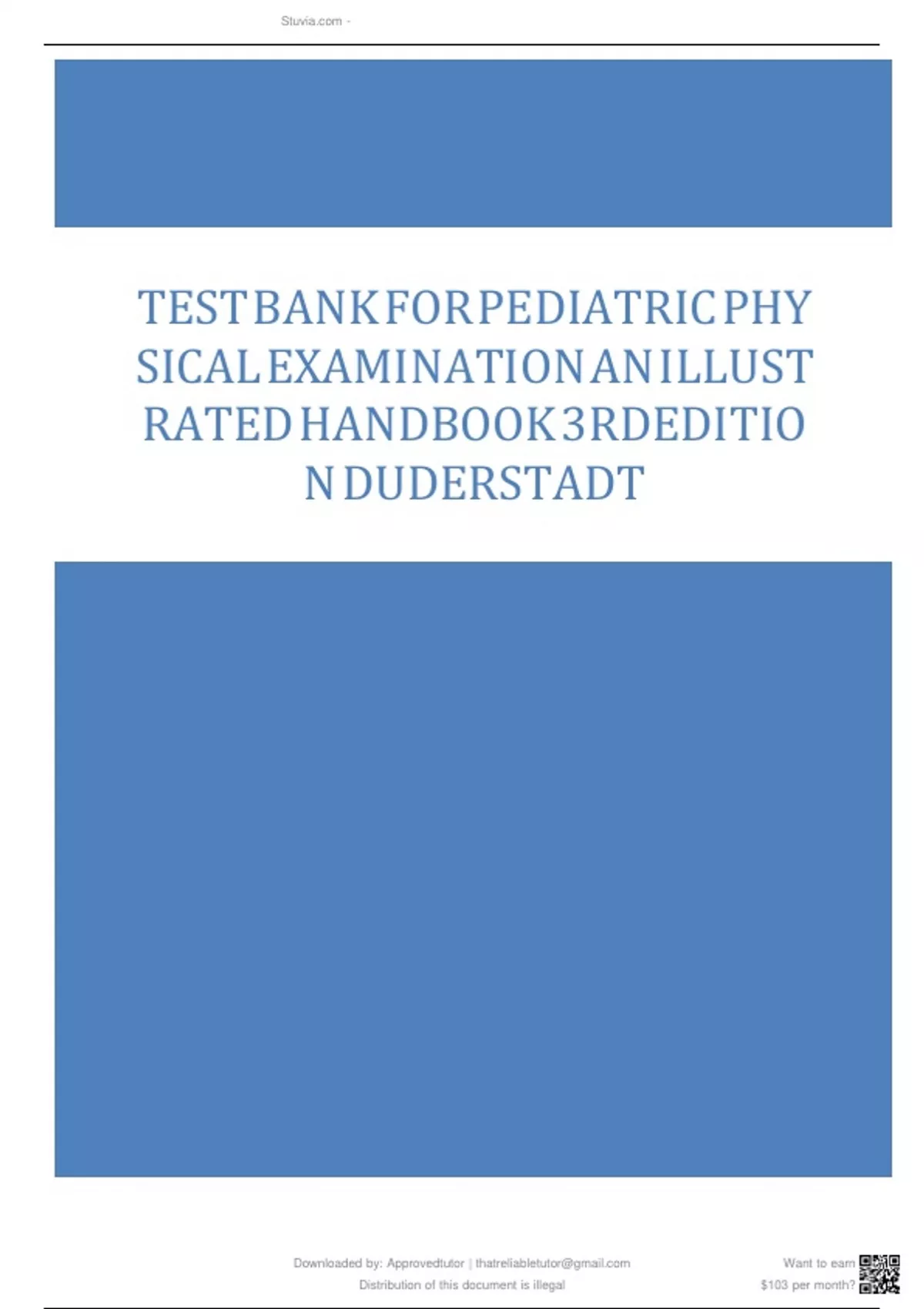 Pediatric Physical Examination 3rd Edition Duderstadt TESTBANK
