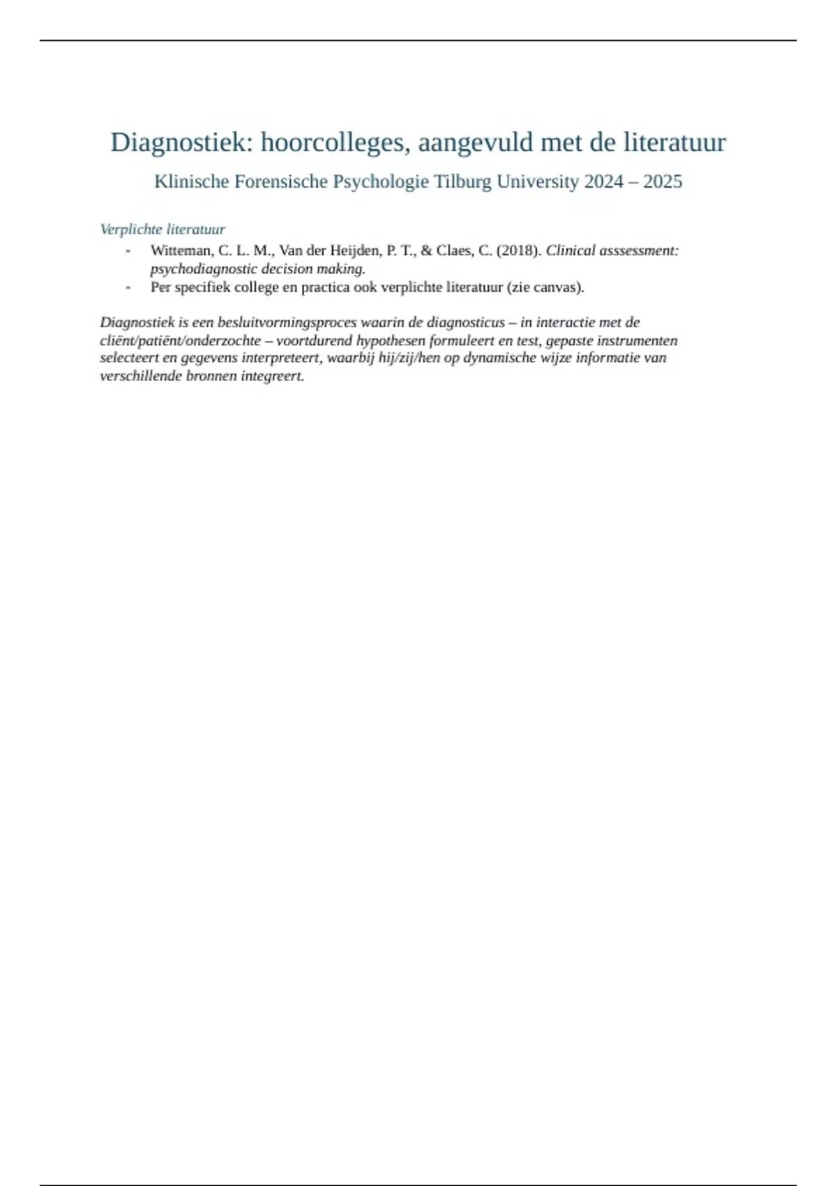 Diagnostiek: hoorcolleges, aangevuld met de literatuur