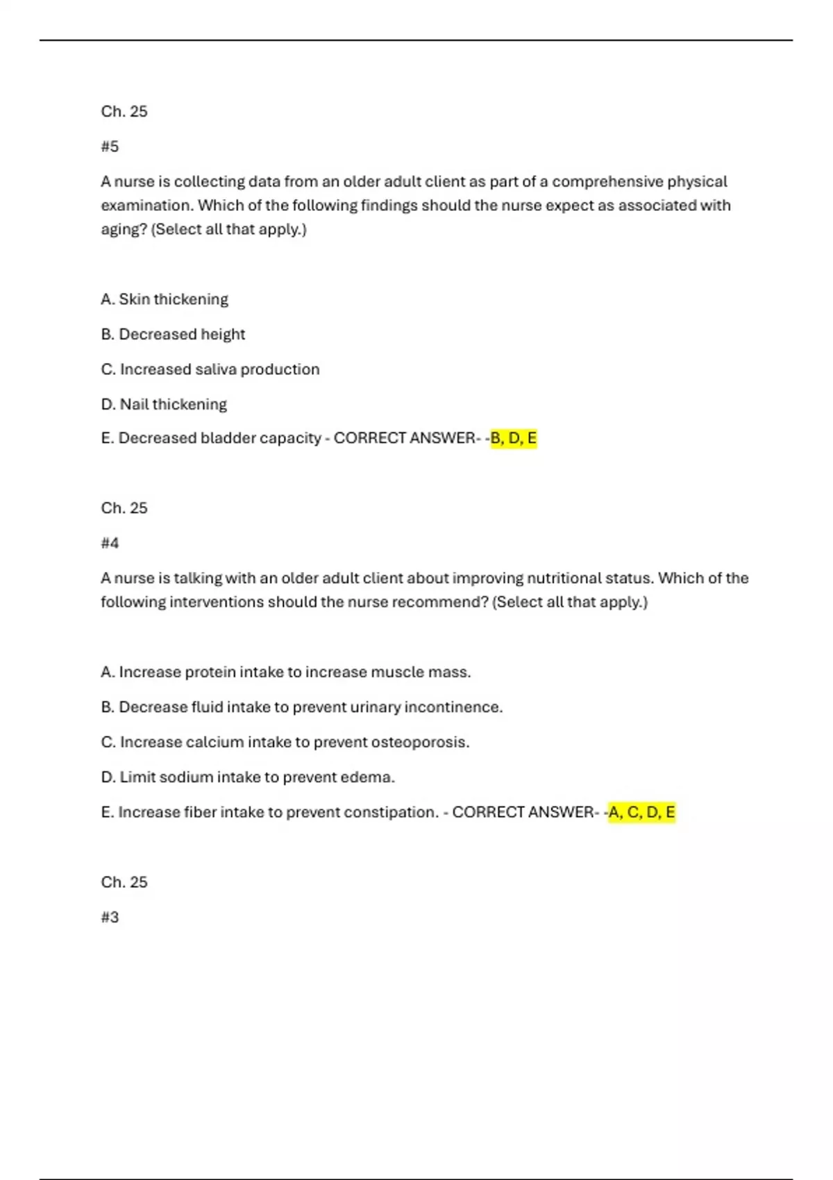 E. Increase fiber intake to prevent constipation. - CORRECT ANSWER- -A, C, D, E