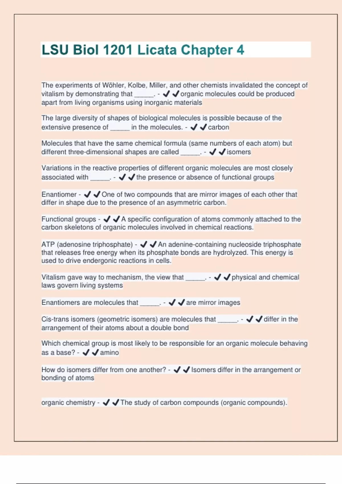 vitalism by demonstrating that _____. - ✔️✔️organic molecules could be produced