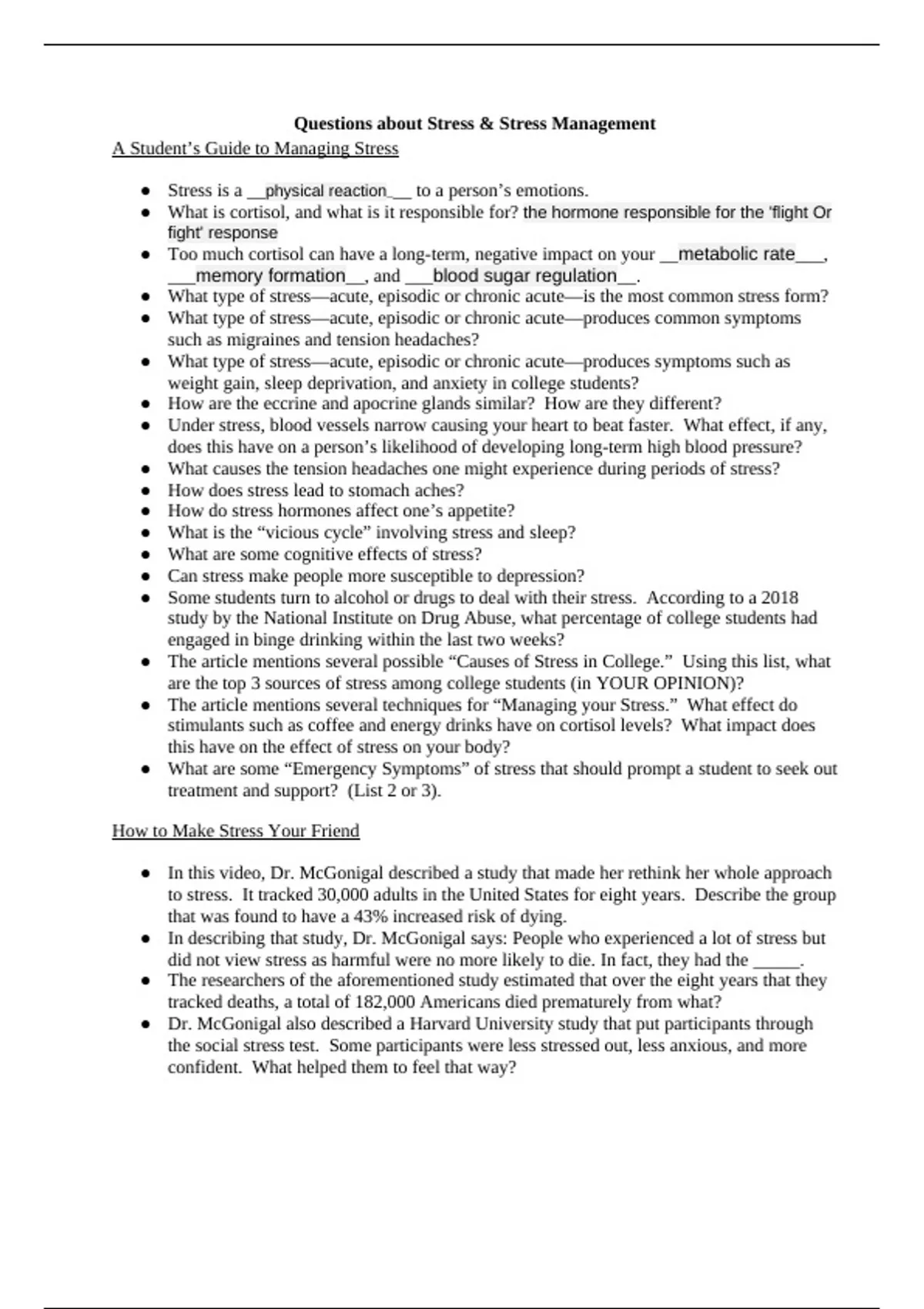 ● The article mentions several possible “Causes of Stress in College.” Using this list, what