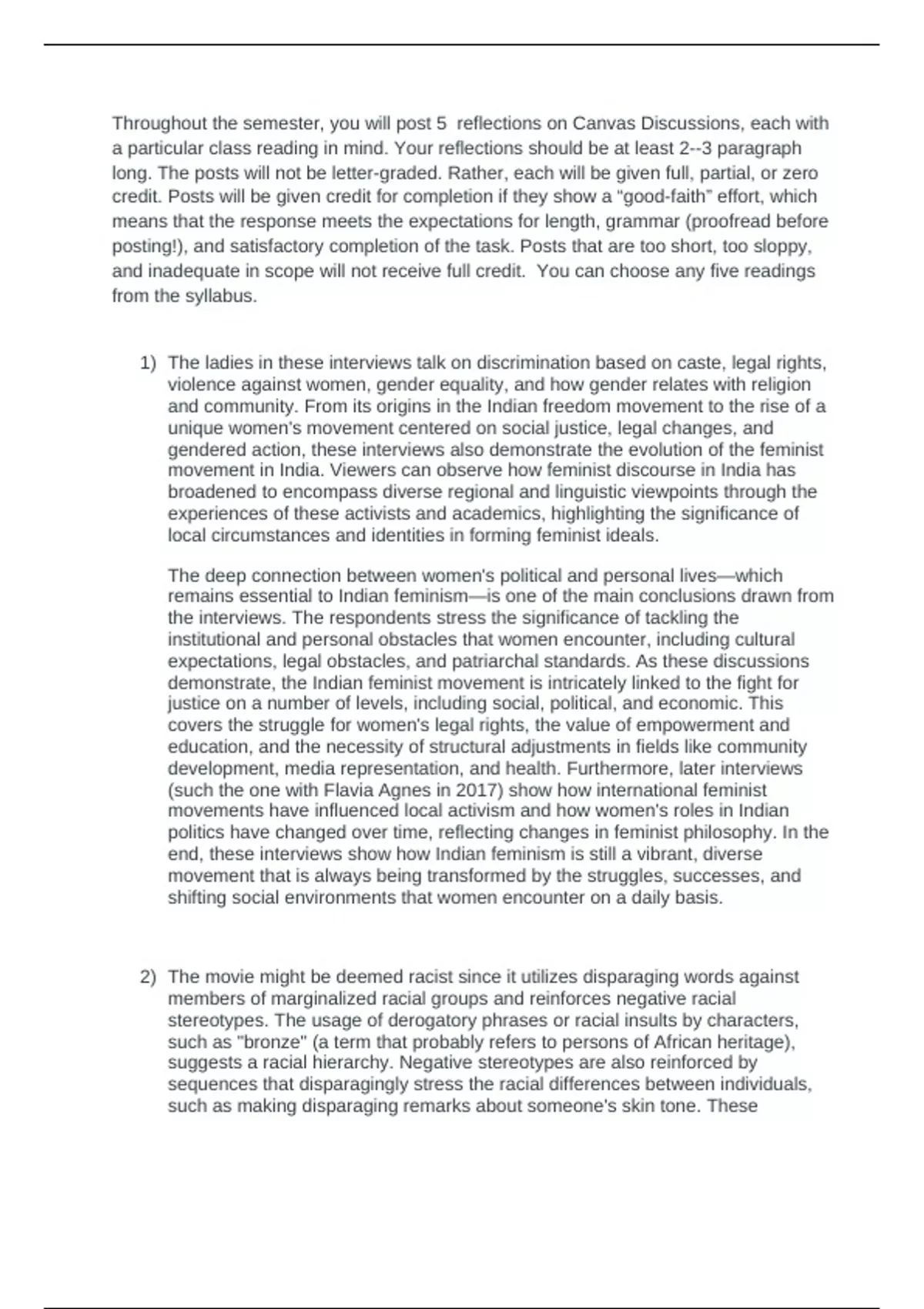 a particular class reading in mind. Your reflections should be at least 2--3 paragraph