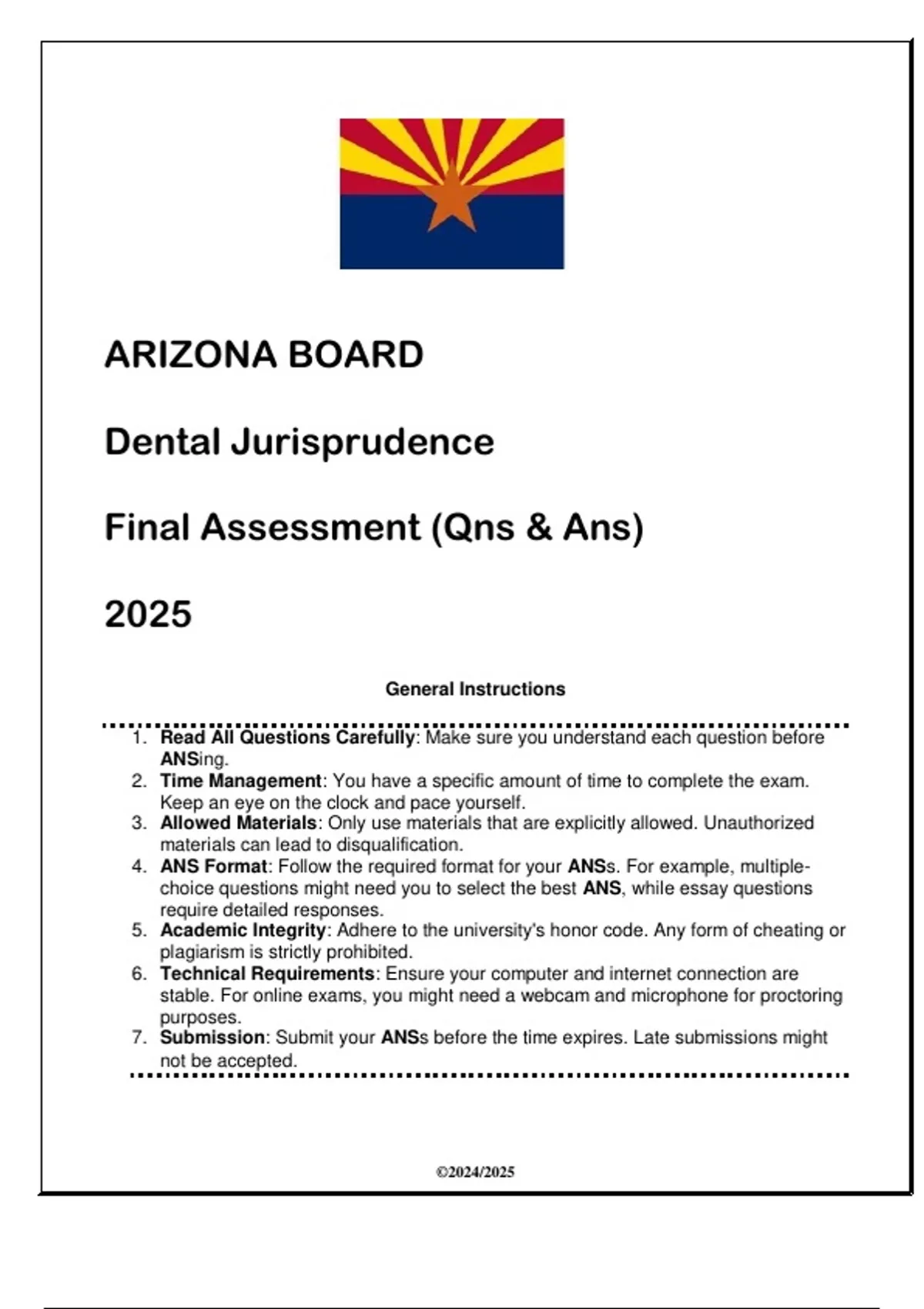 (Arizona Board) Dental Jurisprudence Final Assessment ( Qns & Ans) 2025(Arizona Board) Dental Jurisprudence Final Assessment ( Qns & Ans) 2025(Arizona Board) Dental Jurisprudence Final Assessment ( Qns & Ans) 2025(Arizona Board) Dental Jurisprudence Final Assessment ( Qns & Ans) 2025