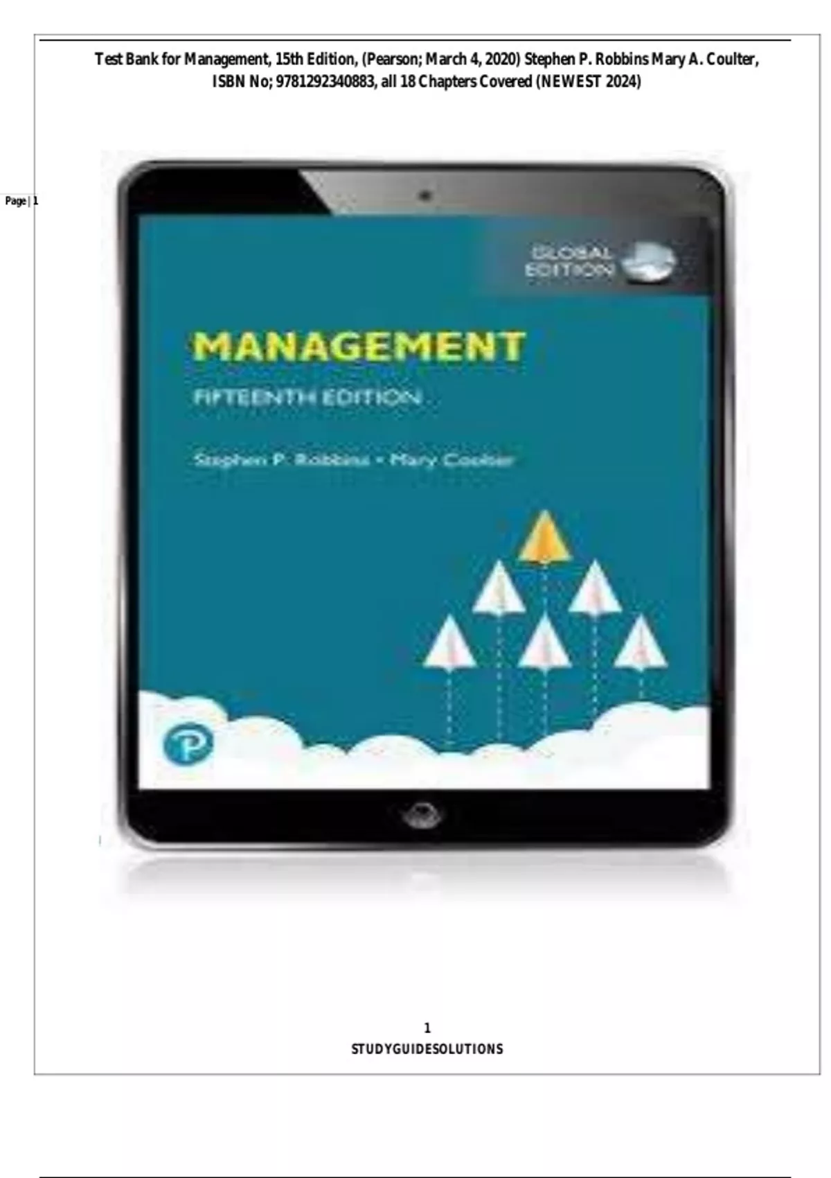 , Test Bank for Management, 15th Edition, (Pearson; March 4, 2020) Stephen P. Robbins Mary A. Coulter,