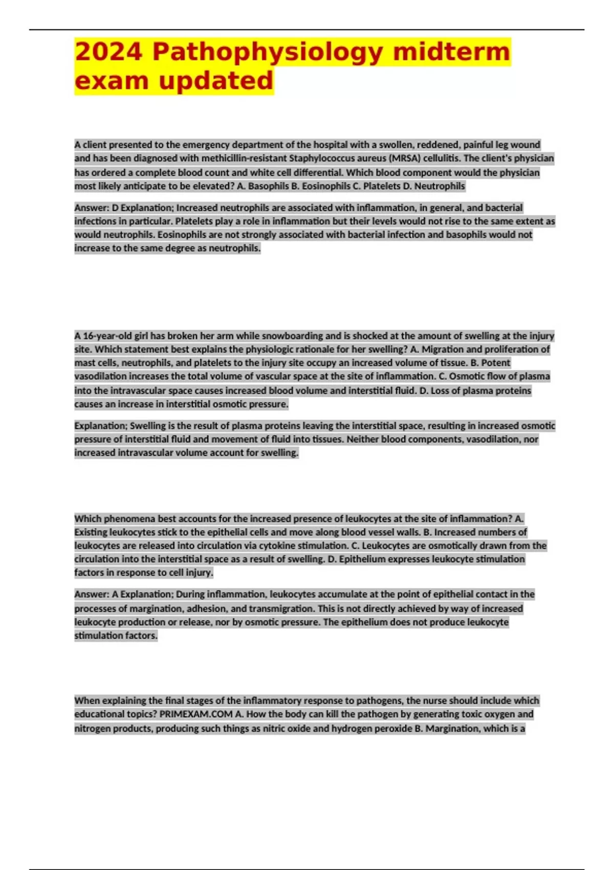 educational topics? PRIMEXAM.COM A. How the body can kill the pathogen by generating toxic oxygen and