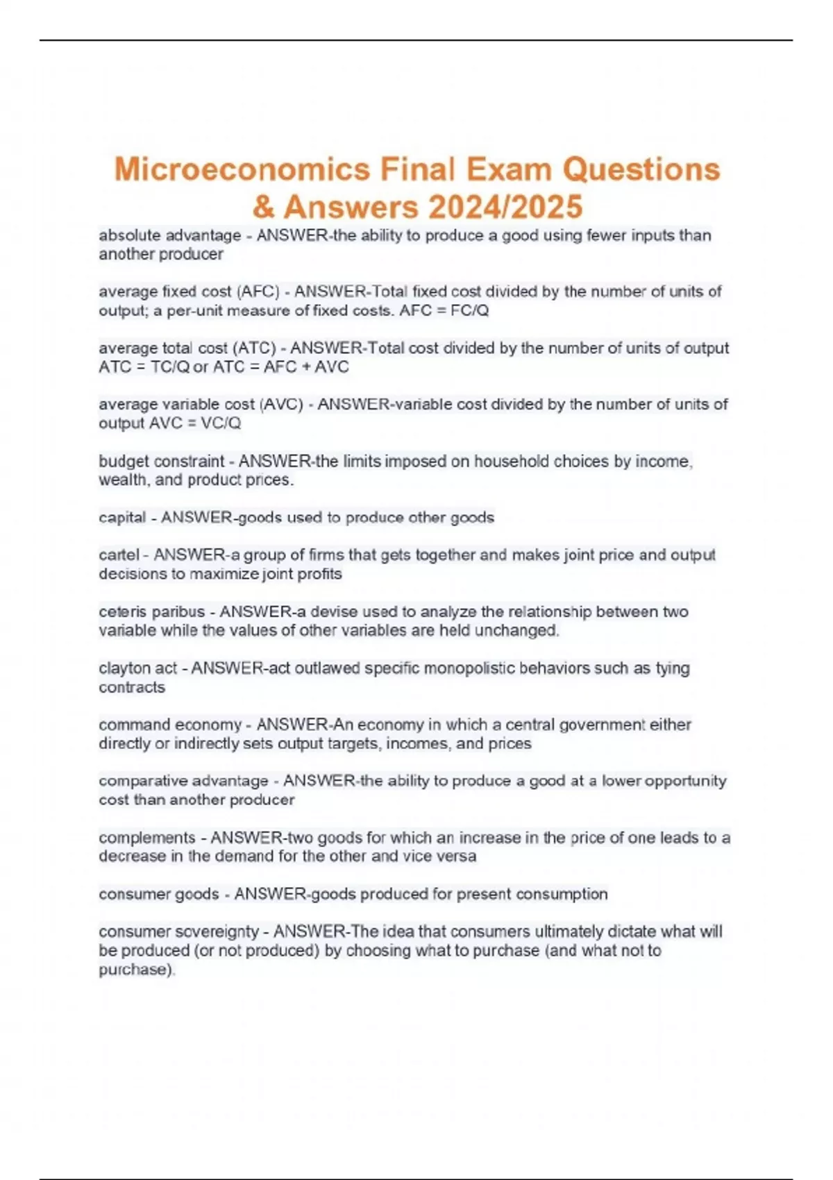 Microeconomics Final Exam Questions & Answers 2024/2025