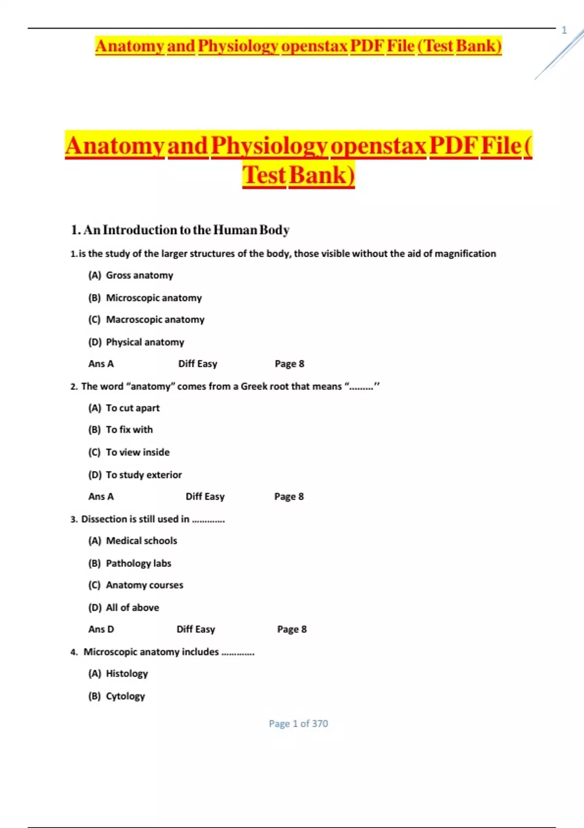 Anatomy and Physiology openstax PDF File (Test Bank)