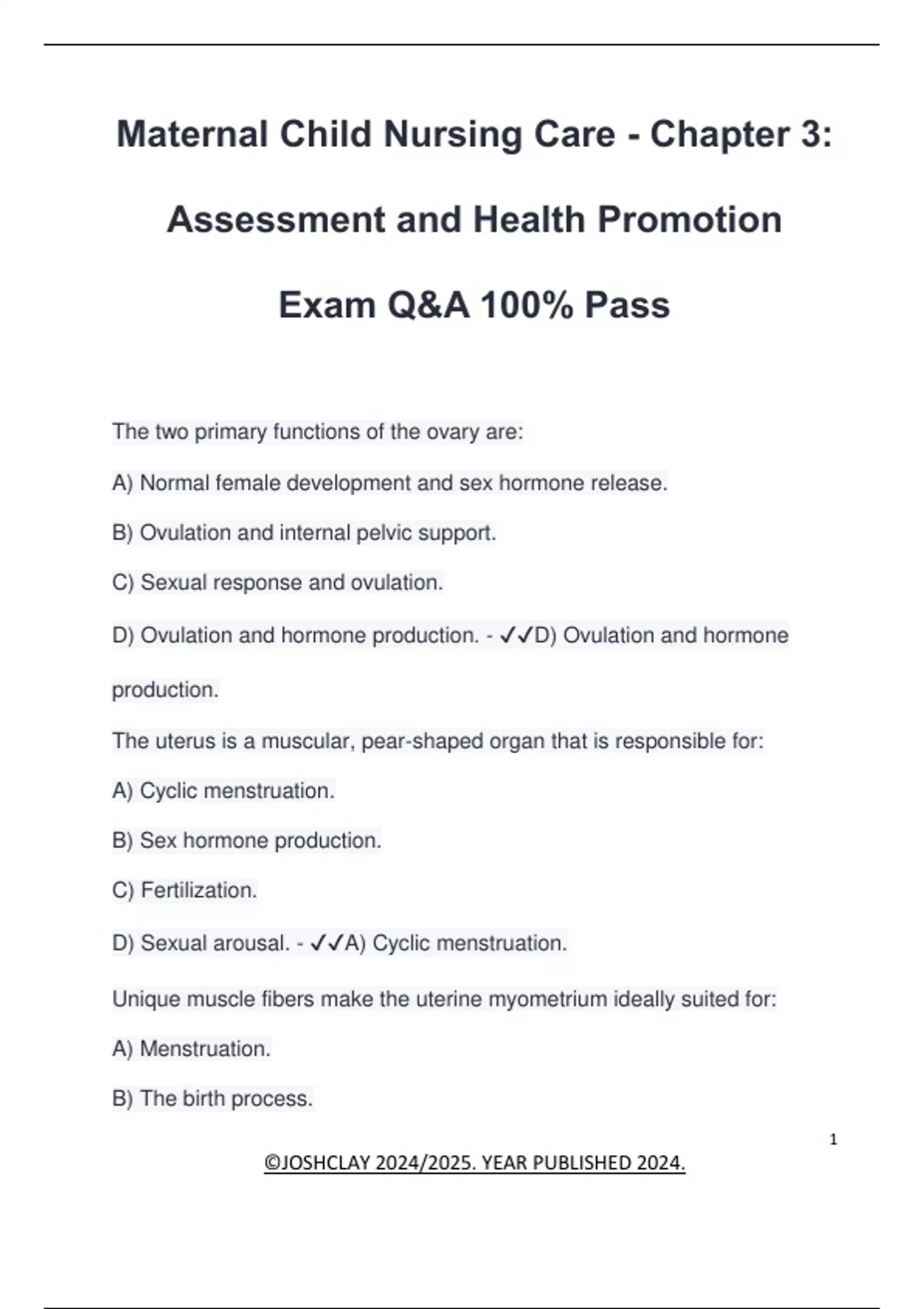 D) Ovulation and hormone production. - ✔✔D) Ovulation and hormone