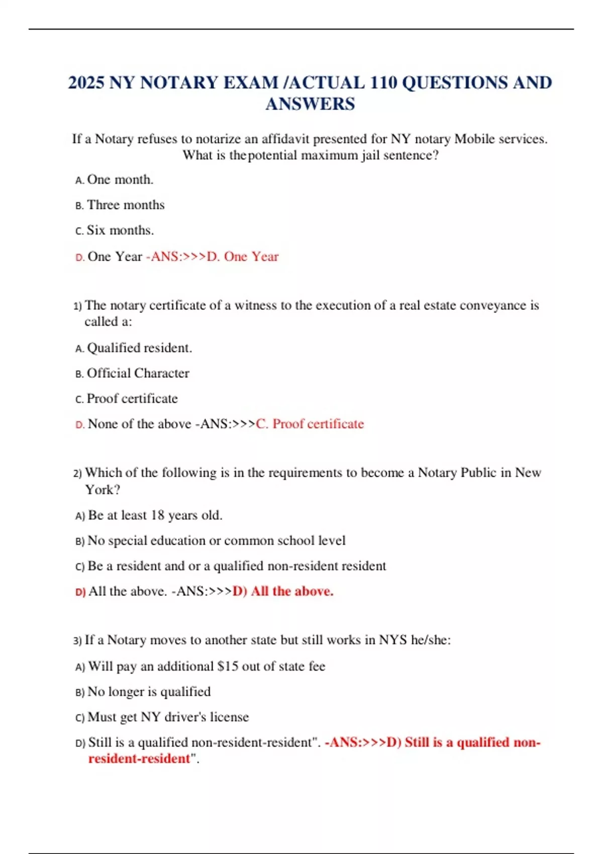 2025 NY NOTARY EXAM /ACTUAL 110 QUESTIONS AND