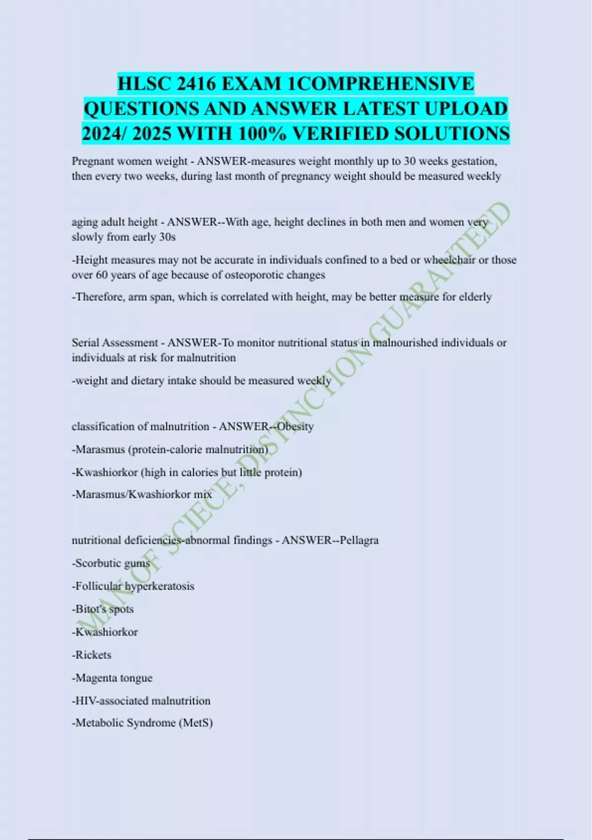 HLSC 2416 EXAM 1COMPREHENSIVE QUESTIONS AND ANSWER LATEST UPLOAD 2024/ 2025 WITH 100% VERIFIED SOLUTIONS
